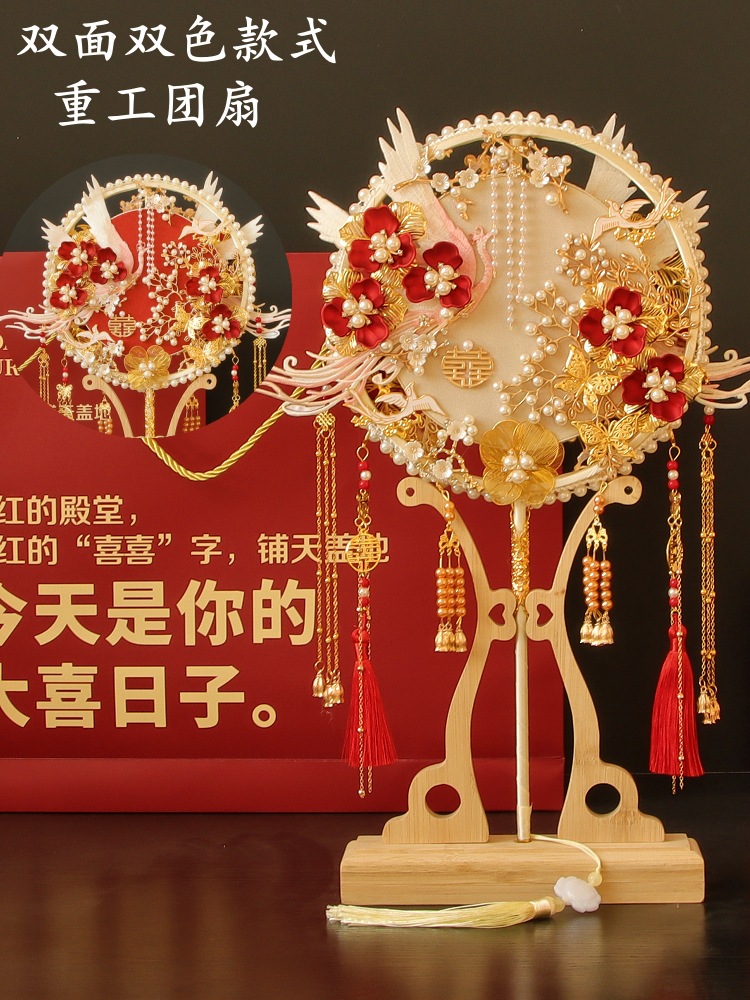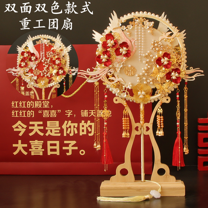 양면 중공업 그룹 팬 신부 웨딩 DIY 소재 가방 골동품 수제 Xiuhe 고급 얼굴 커버 해피 팬