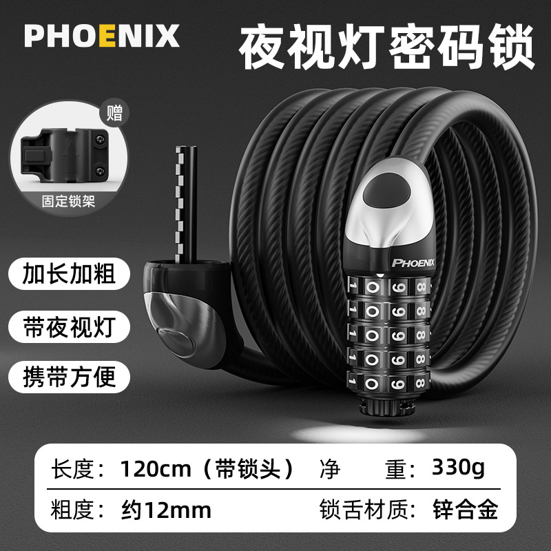 • 4자리 비밀번호 [검정색 125cm] 두꺼운 12mm 강철 케이블