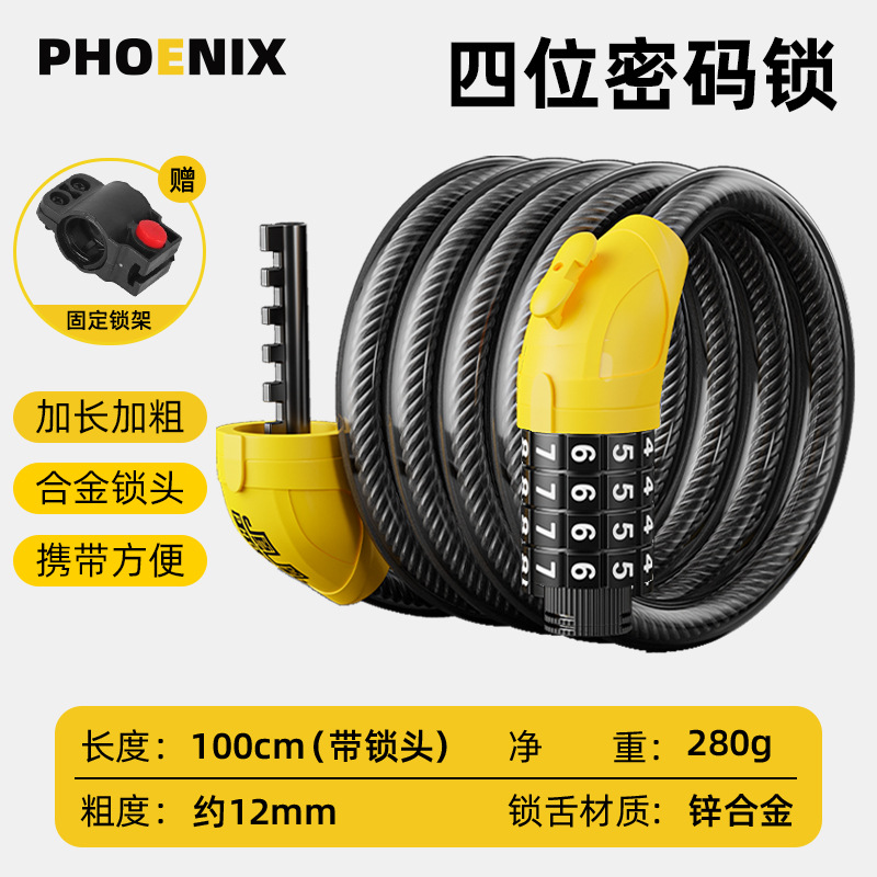 • 4자리 비밀번호 [검정색, 노란색 125cm] 굵은 12mm 강철케이블