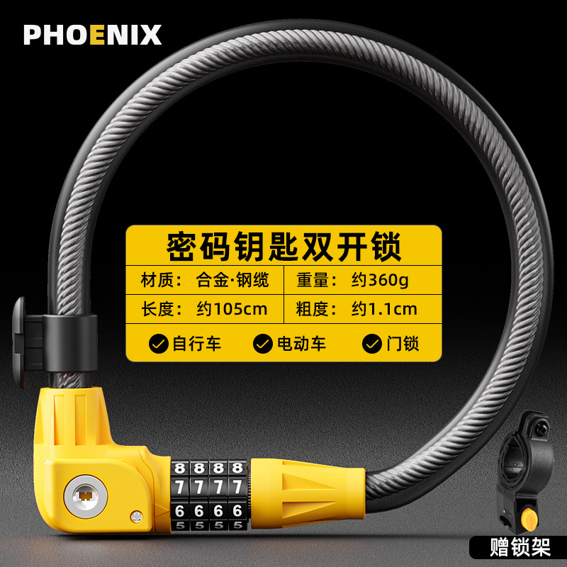 • 키 스틸 케이블 [검정색과 노란색 105cm] 도난 방지 잠금 실린더