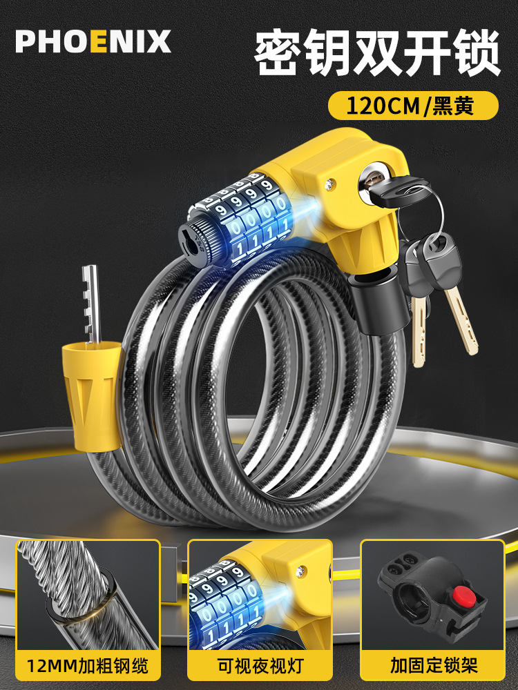 • 6자리 비밀번호 [검정색, 노란색 125cm] 굵은 12mm 강철케이블