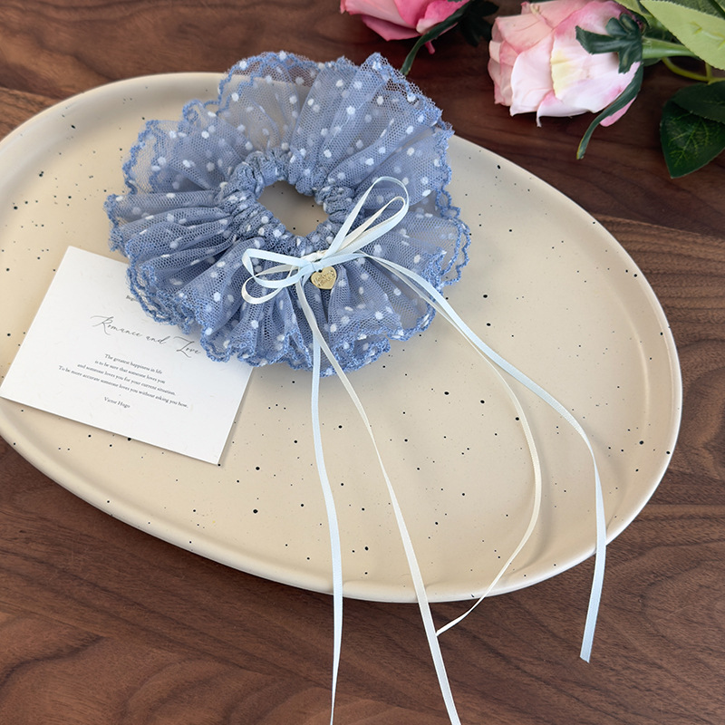 공주 스타일 레이스 원사 웨이브 도트 긴 리본 활 그릇 여성 틈새 달콤한 헤드 라인 슈퍼 요정 헤어 액세서리