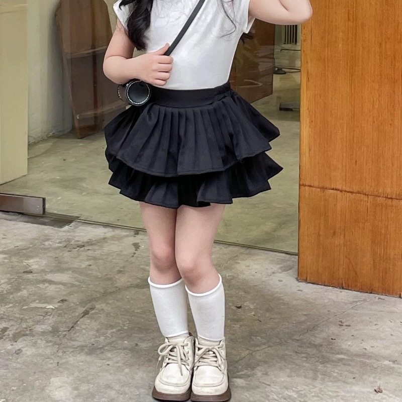 소녀 여름 2025 새로운 한국 스타일 어린 소녀의 푹신한 짧은 치마 아기 소녀 공주 스타일 유행 짧은 치마스토어 가기