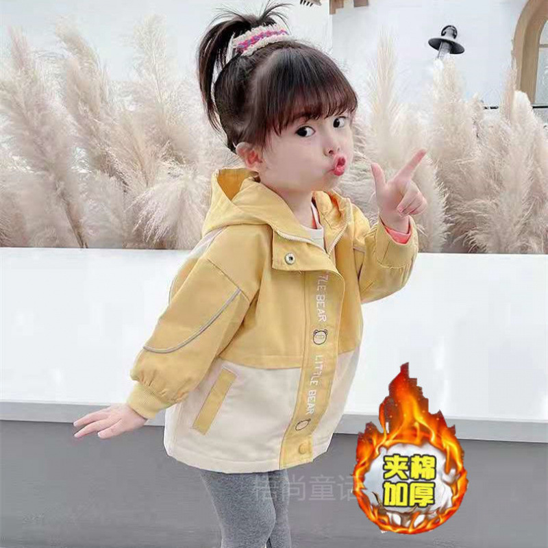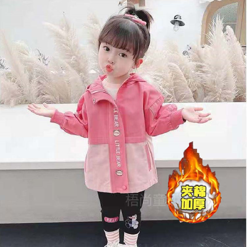 여아용 코트 중소형 아동면 패딩 가을 바느질 가을 옷 어린 소녀의 한국식 느슨한 바람막이 아기 코트
