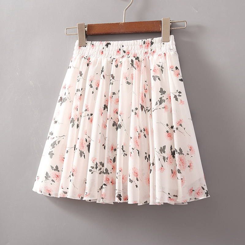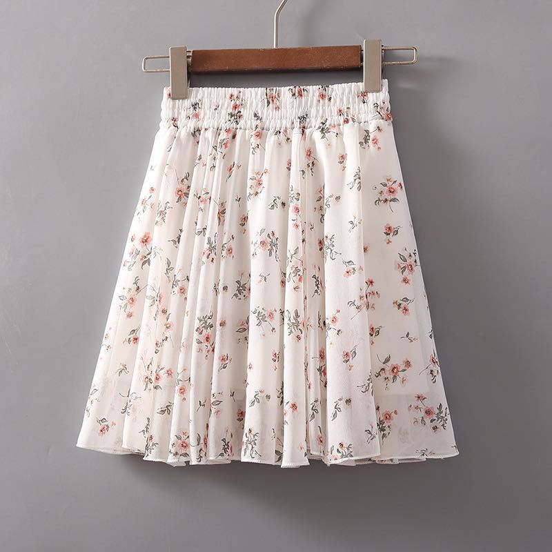 • 흰색 바탕에 작은 붉은 꽃이 있는 짧은 치마