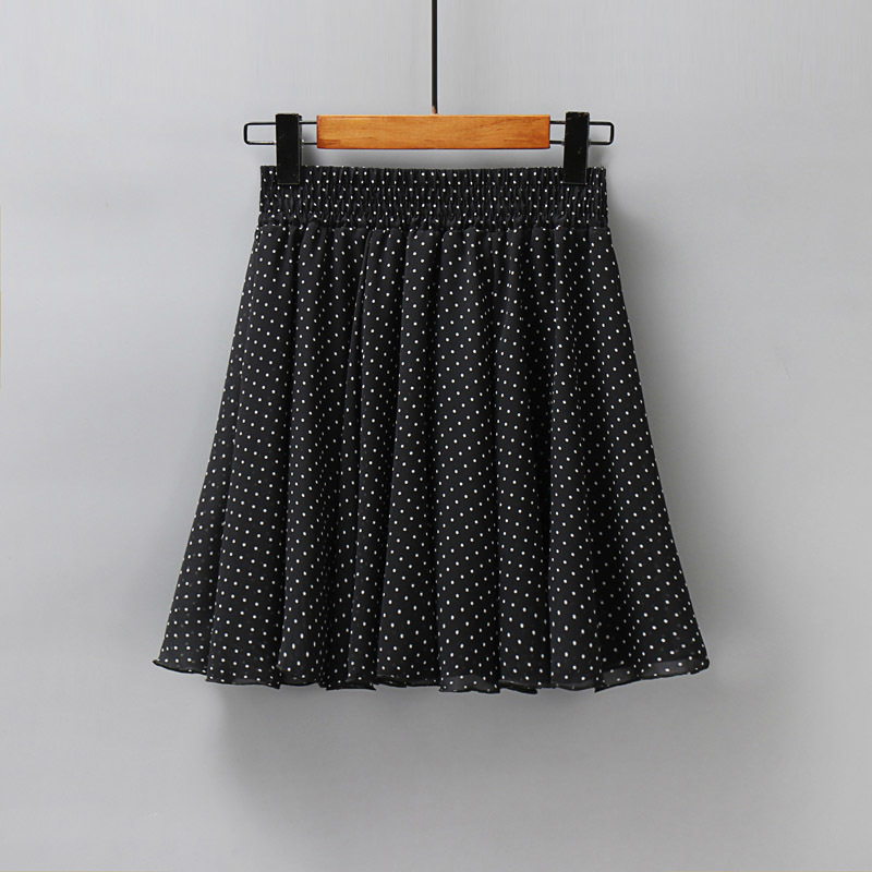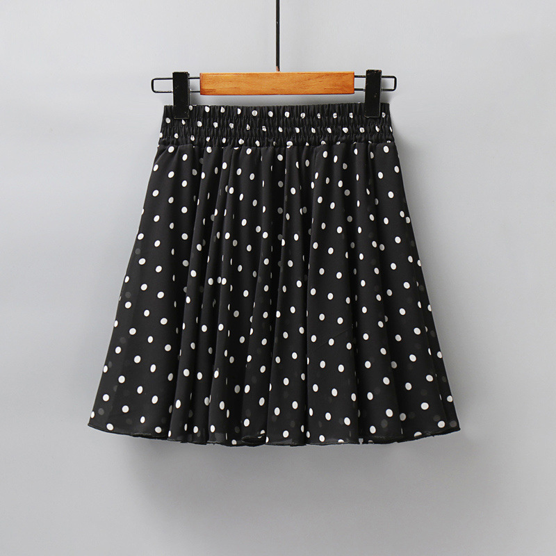 • 검은색 물방울 무늬가 있는 짧은 스커트