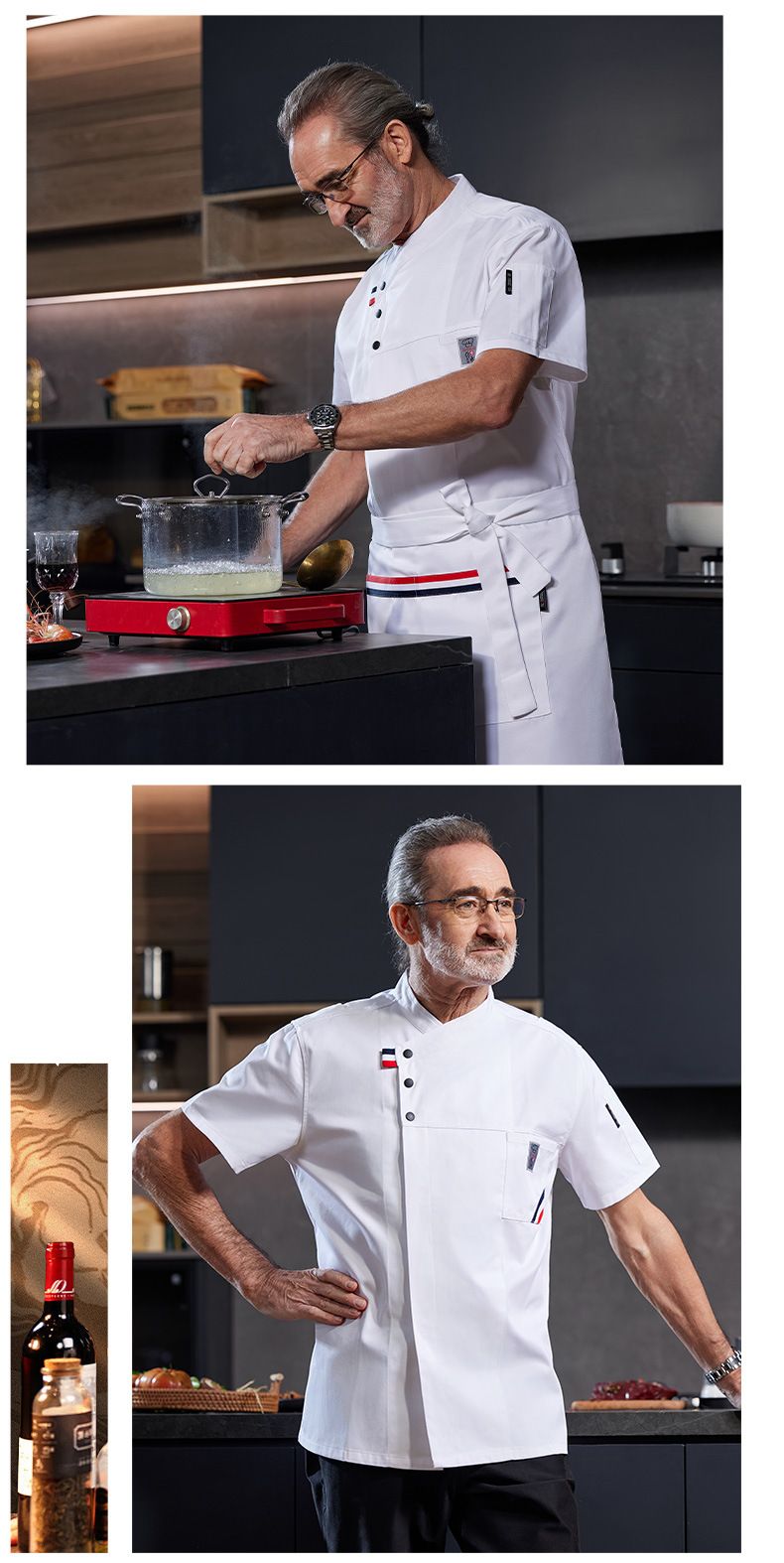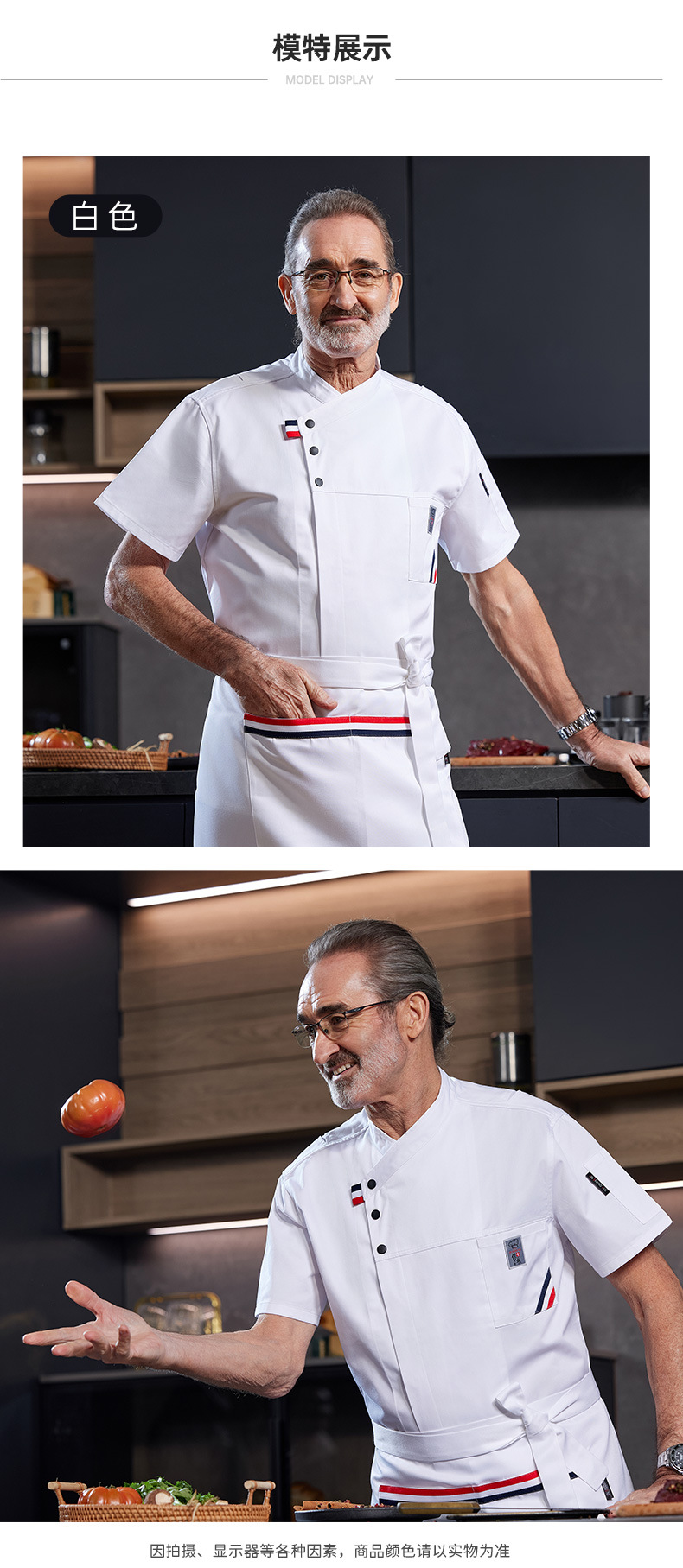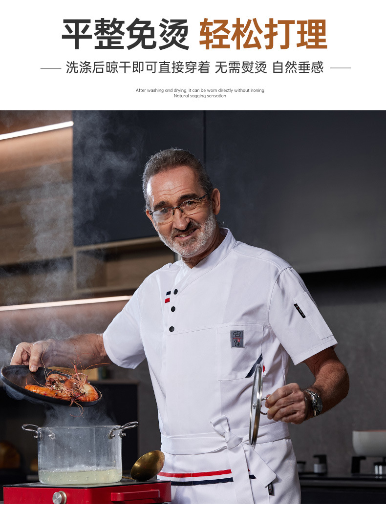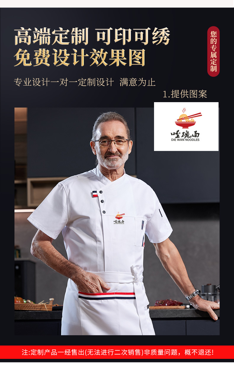 셰프의 작업복 반팔 여름 얇은 유행 하이 엔드 맞춤형 서양식 호텔 셰프 의류 남성용 주방 케이터링