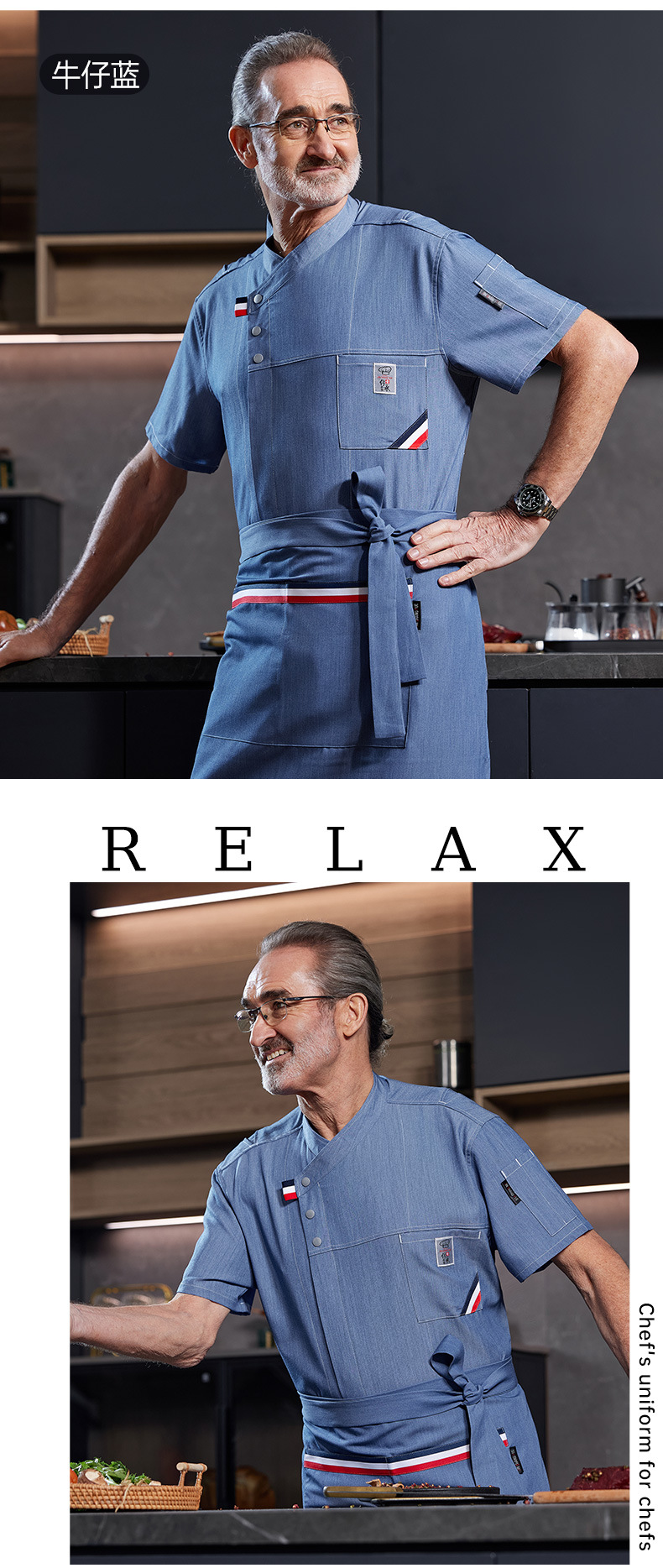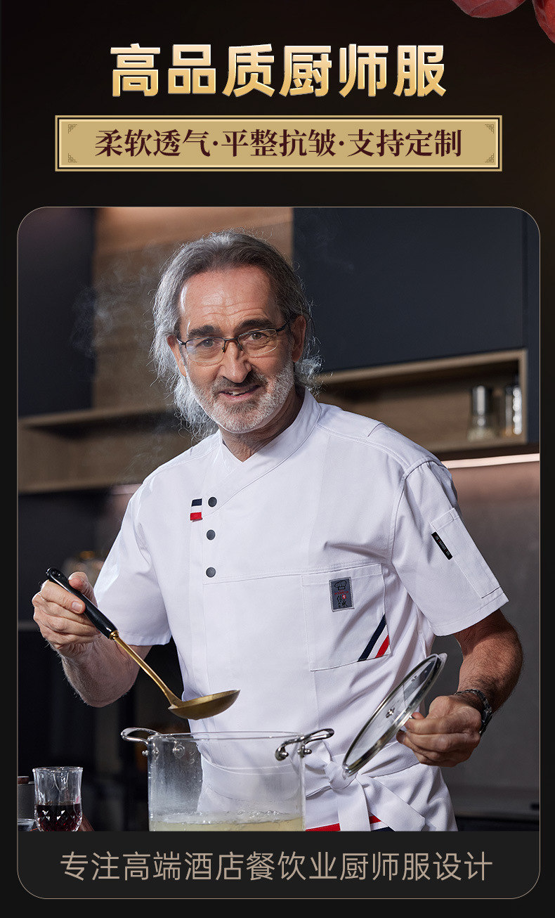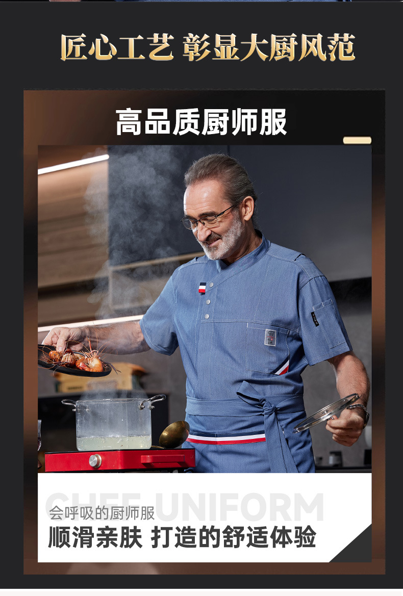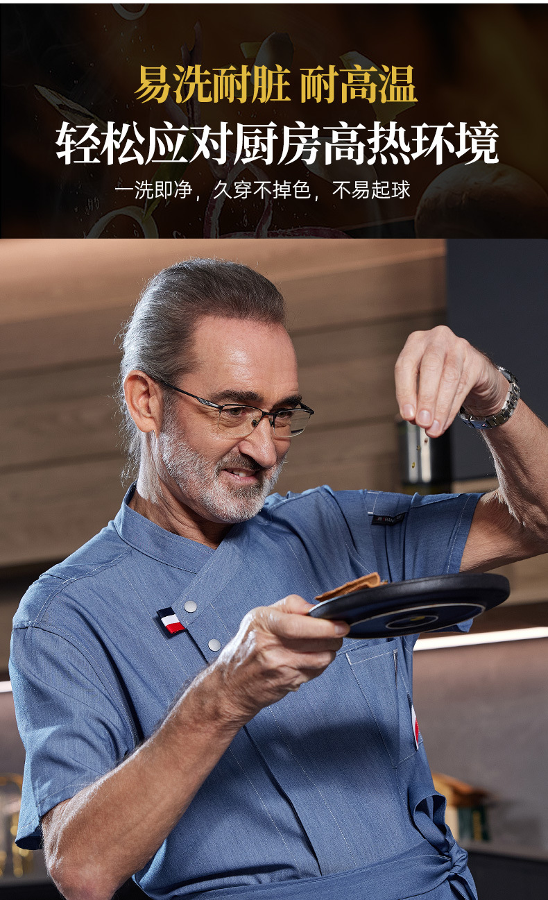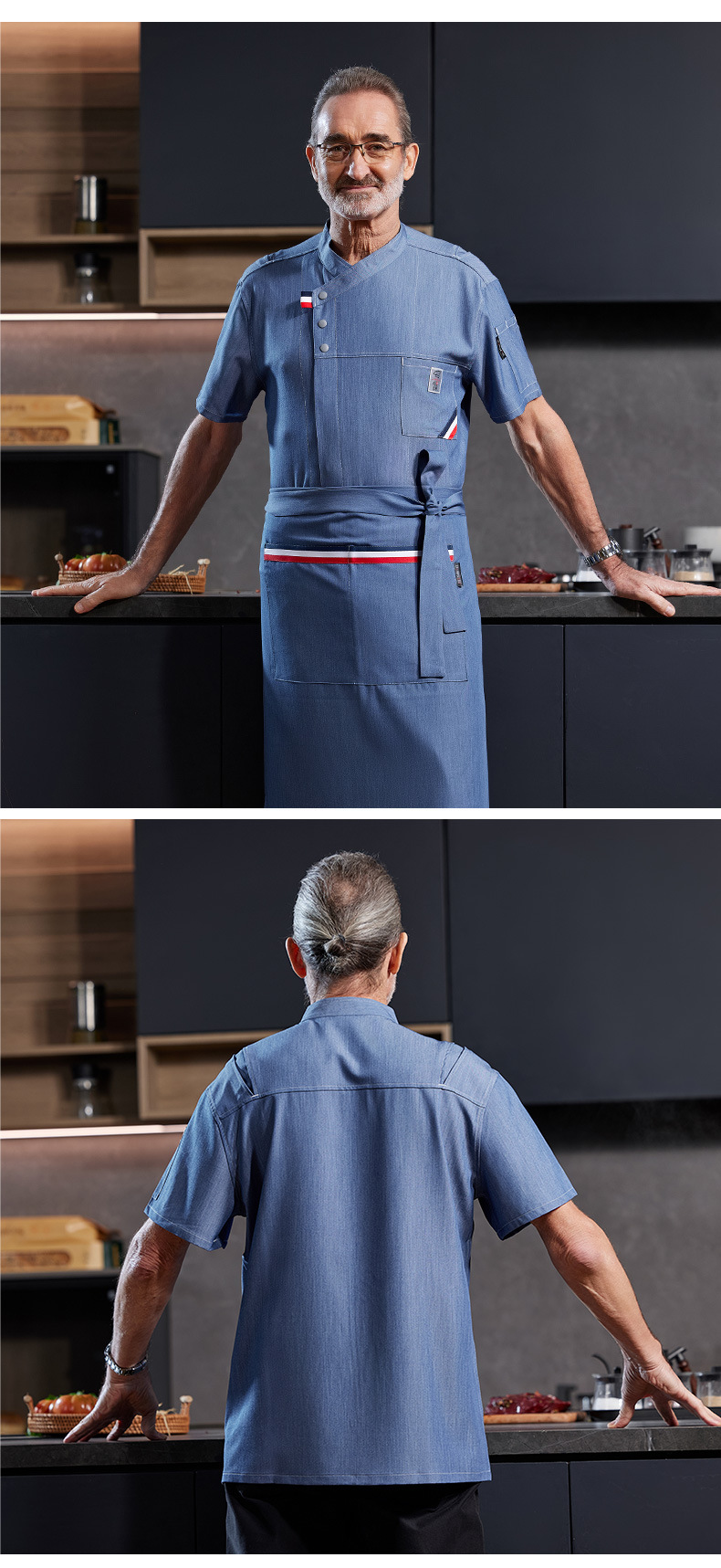 셰프의 작업복 반팔 여름 얇은 유행 하이 엔드 맞춤형 서양식 호텔 셰프 의류 남성용 주방 케이터링