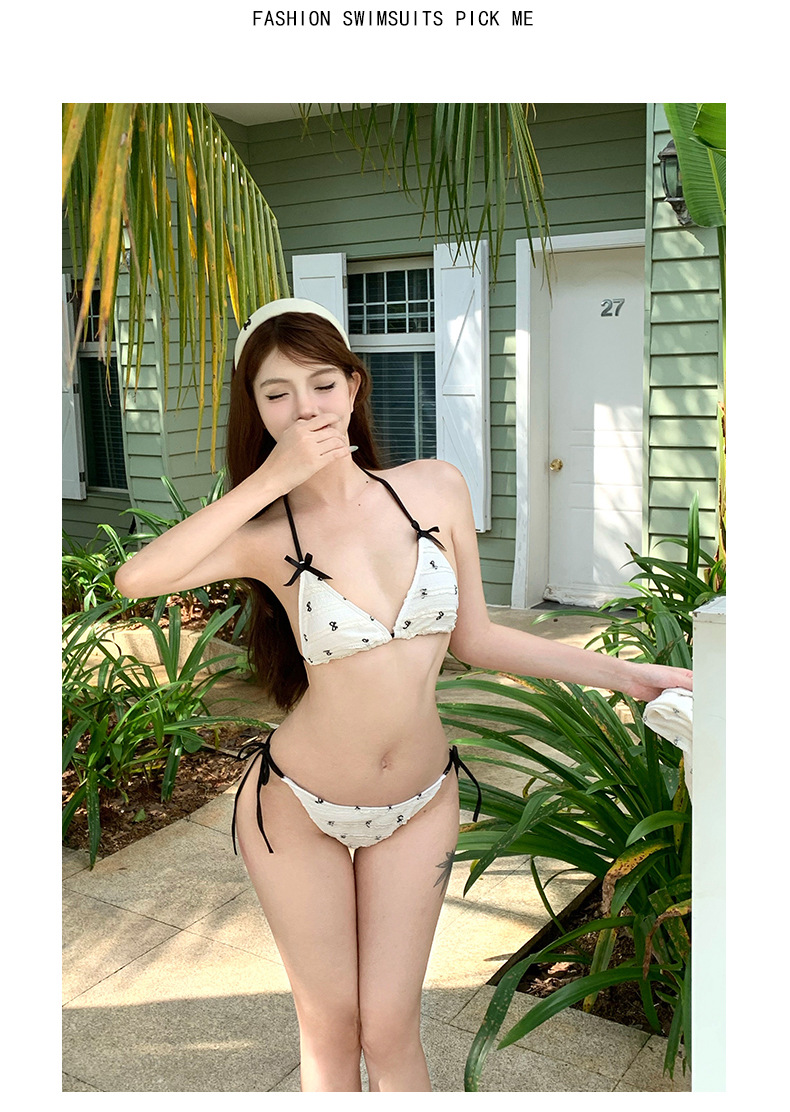 하이 엔드 달콤한 귀여운 소녀 순수한 욕망 작은 샤넬 스타일 비키니 3 피스 섹시한 분할 수영복 해변 휴가