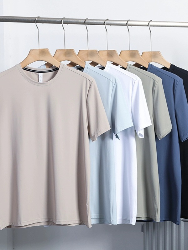 여름 커플의 새로운 빠른 건조 통근 달리기 스포츠 레저 올 매치 크루 넥 스트레치 슈트 반팔 티셔츠 트렌디스토어 가기