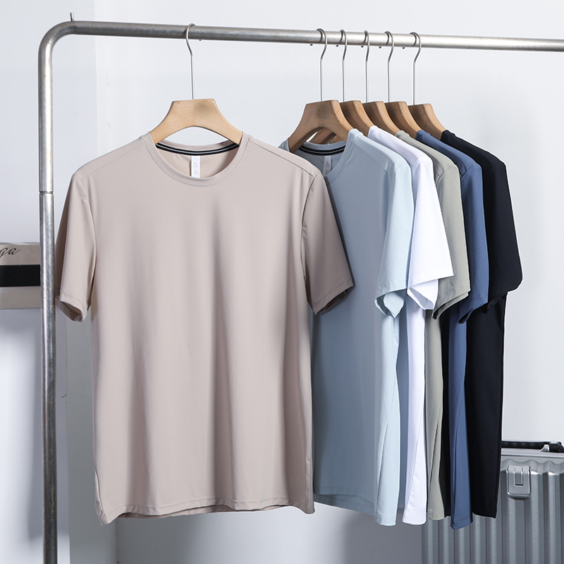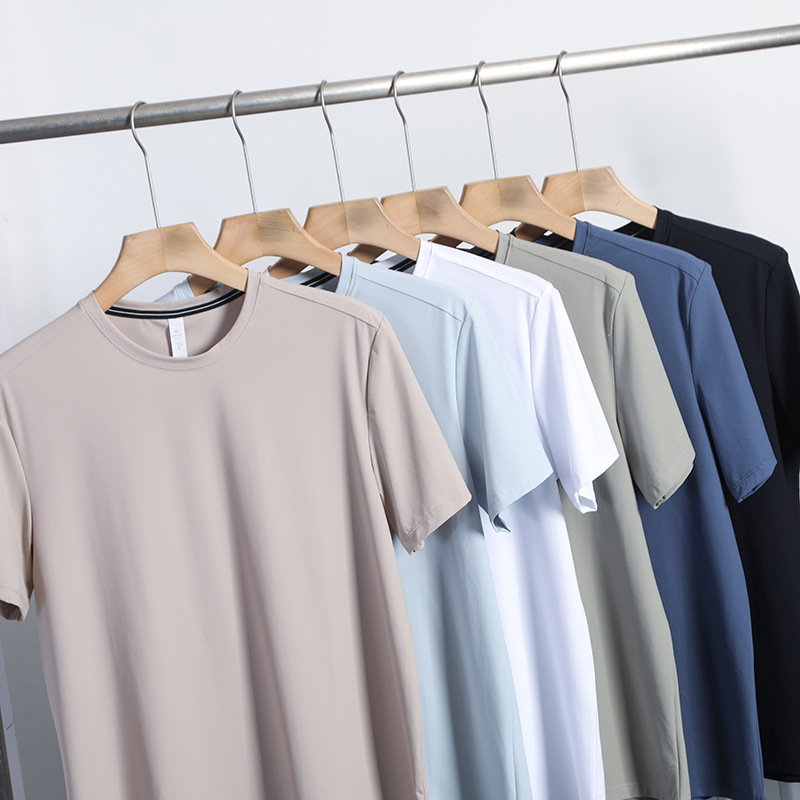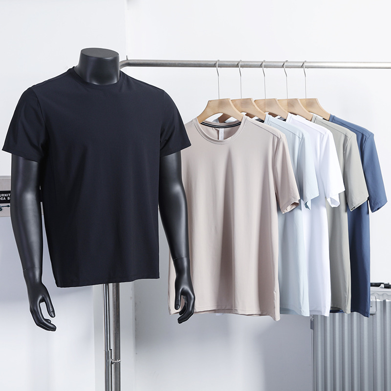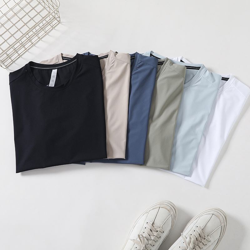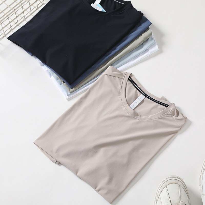 여름 커플의 새로운 빠른 건조 통근 달리기 스포츠 레저 올 매치 크루 넥 스트레치 슈트 반팔 티셔츠 트렌디