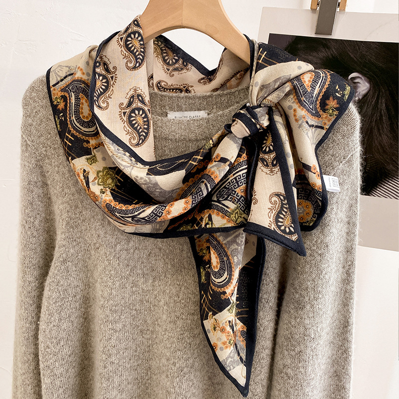 고급 양면 이중층 모조 실크 울 스카프 롱 베벨 스카프 여자 봄 가을 · 겨울 대형 스트랩 올매치 스카프