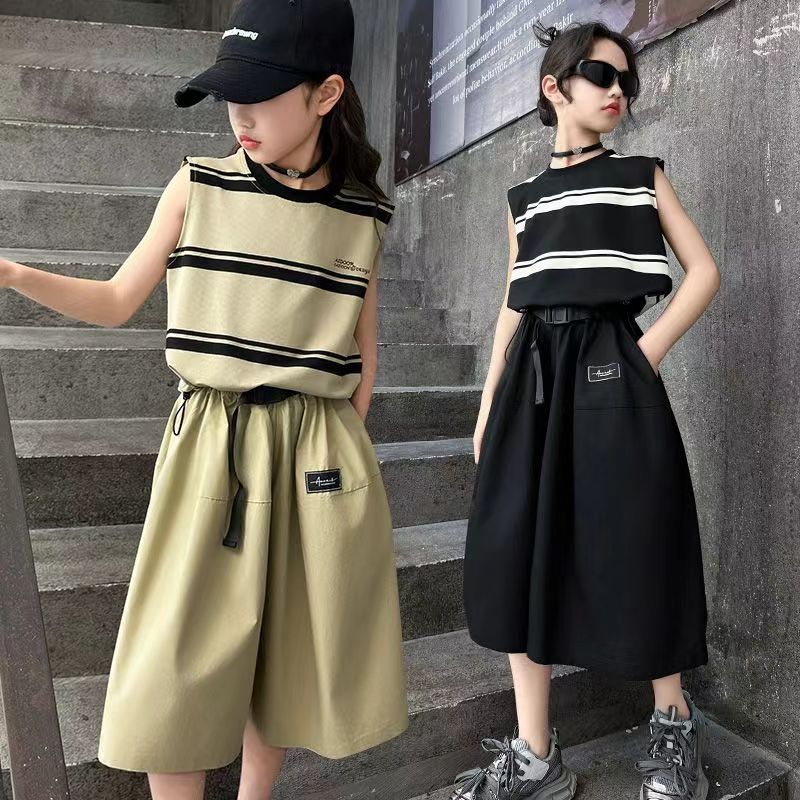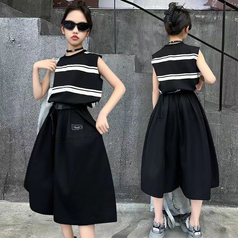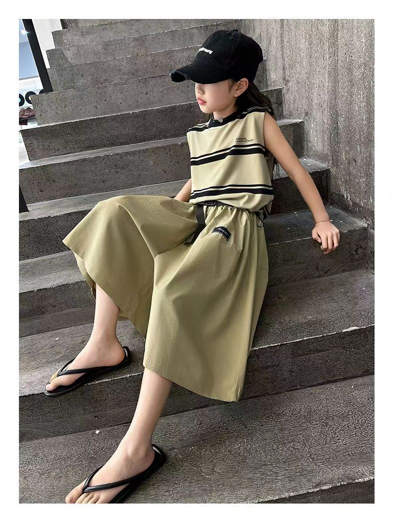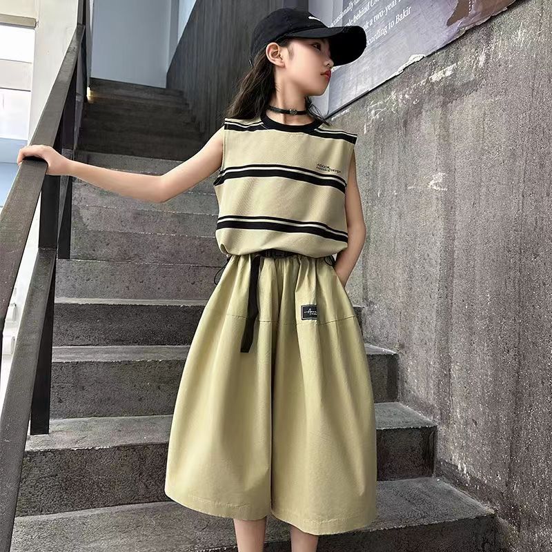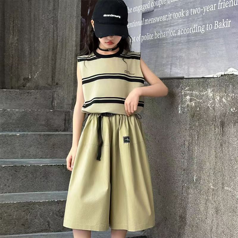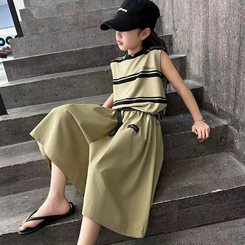 소녀 여름 세트 새로운 패션 세련된 소녀 빅 키즈 어린이 여름 소녀 투피스 트렌디 바지 스커트