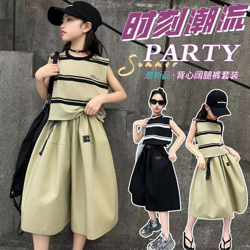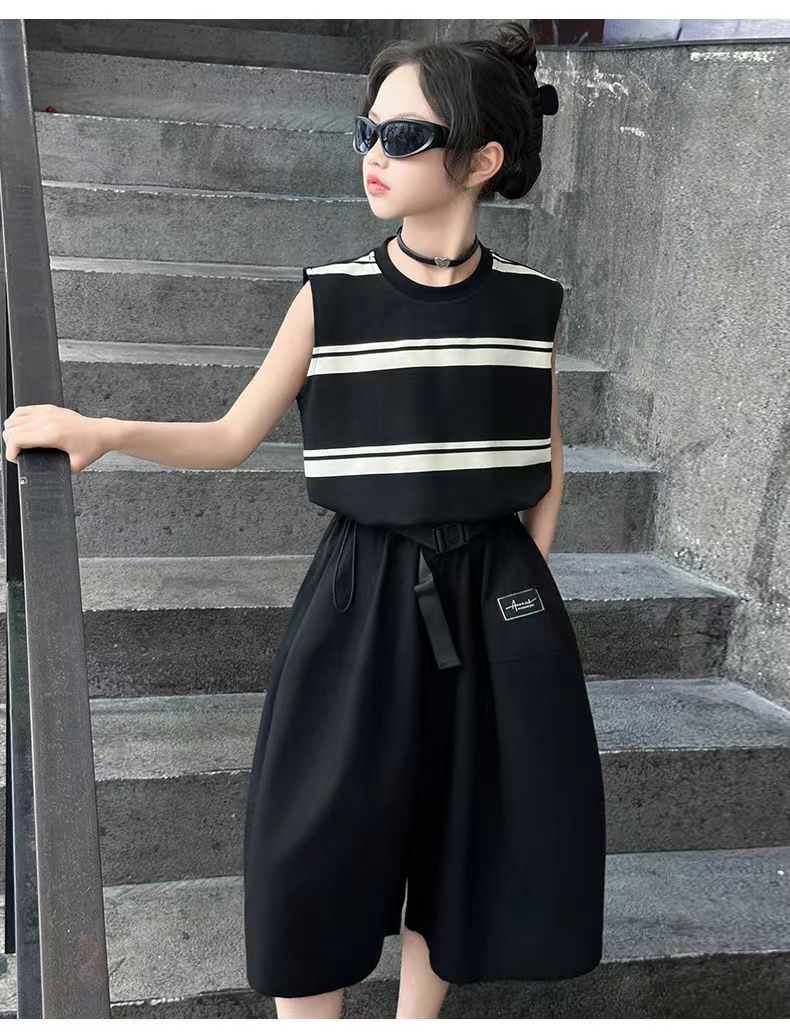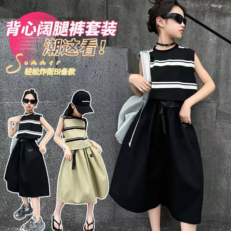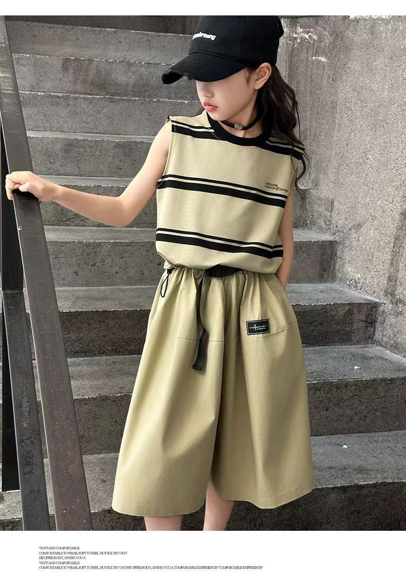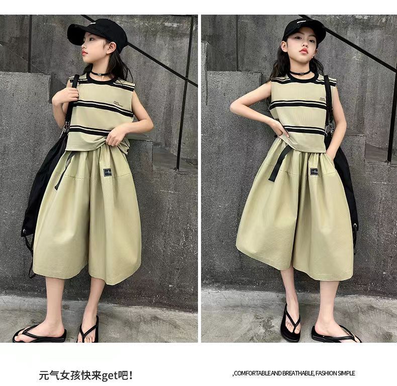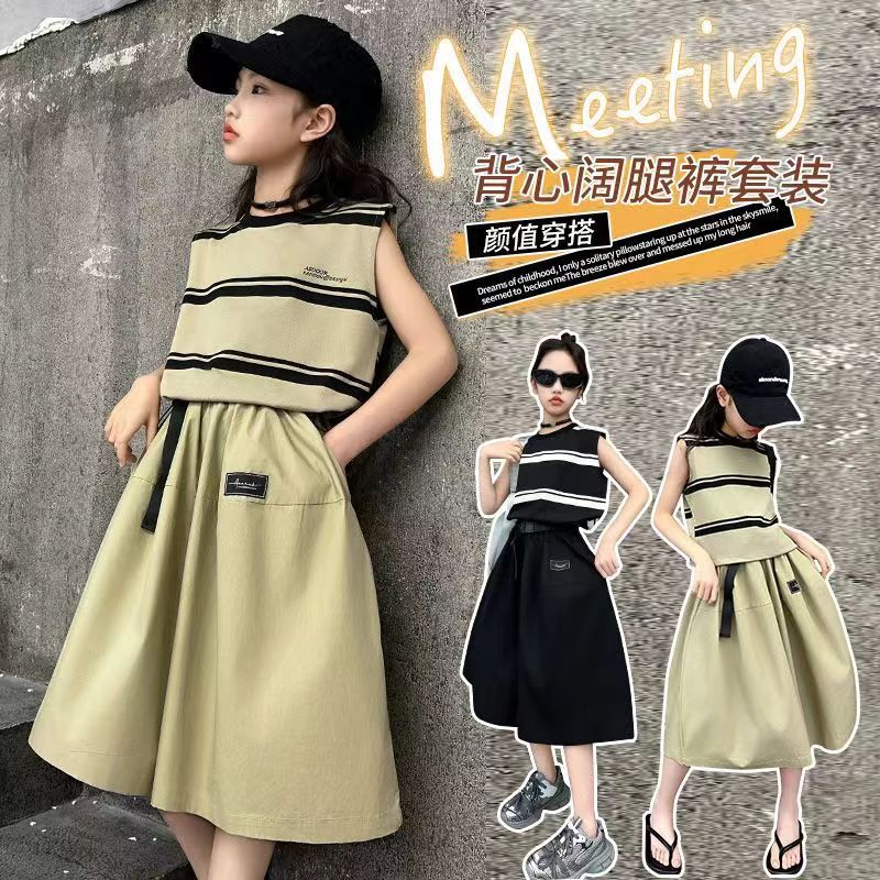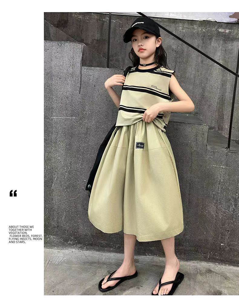 소녀 여름 세트 새로운 패션 세련된 소녀 빅 키즈 어린이 여름 소녀 투피스 트렌디 바지 스커트