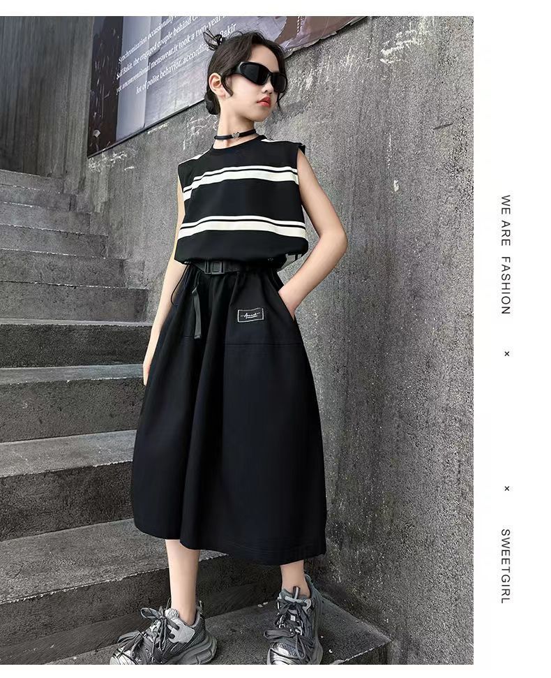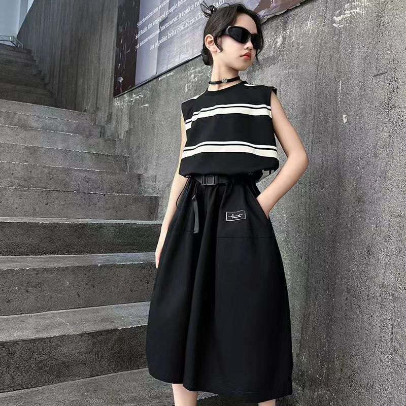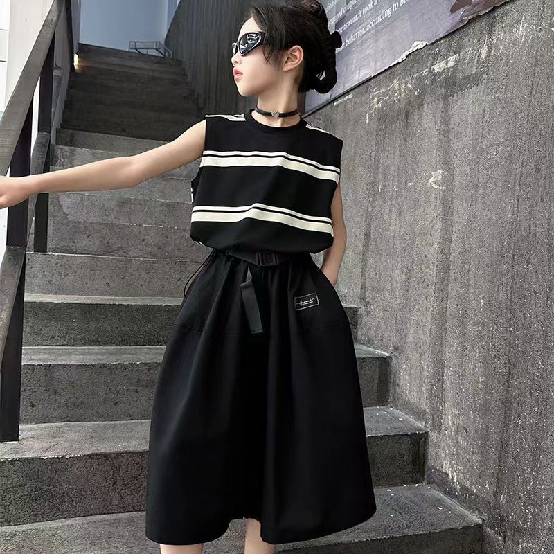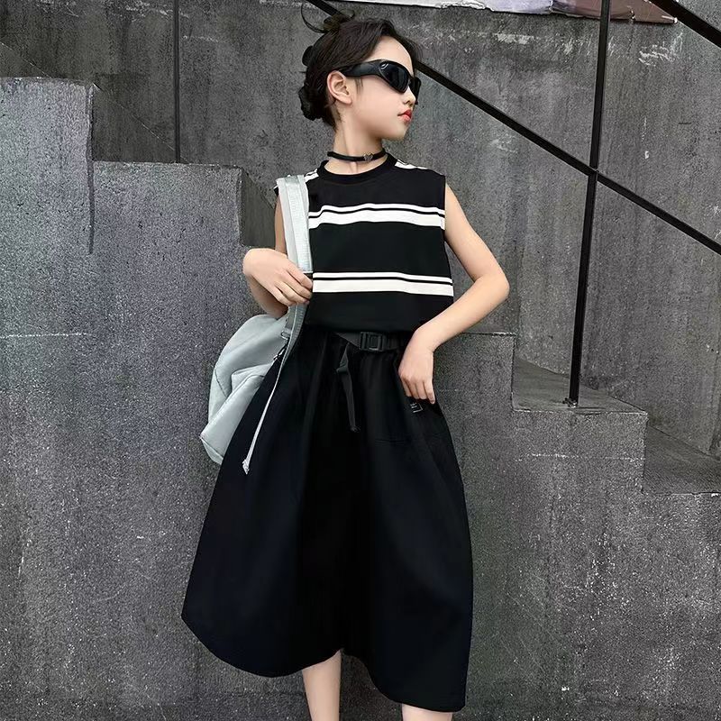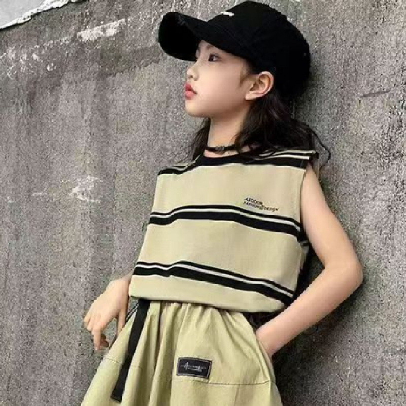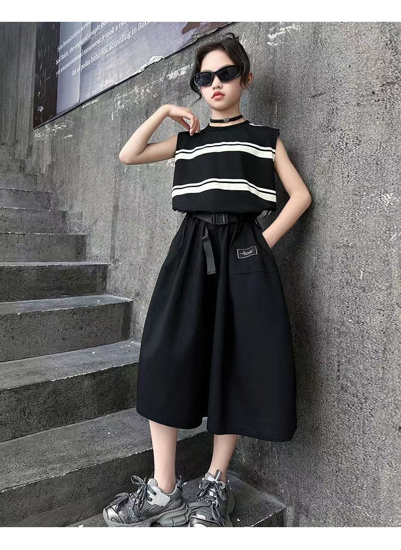 소녀 여름 세트 새로운 패션 세련된 소녀 빅 키즈 어린이 여름 소녀 투피스 트렌디 바지 스커트