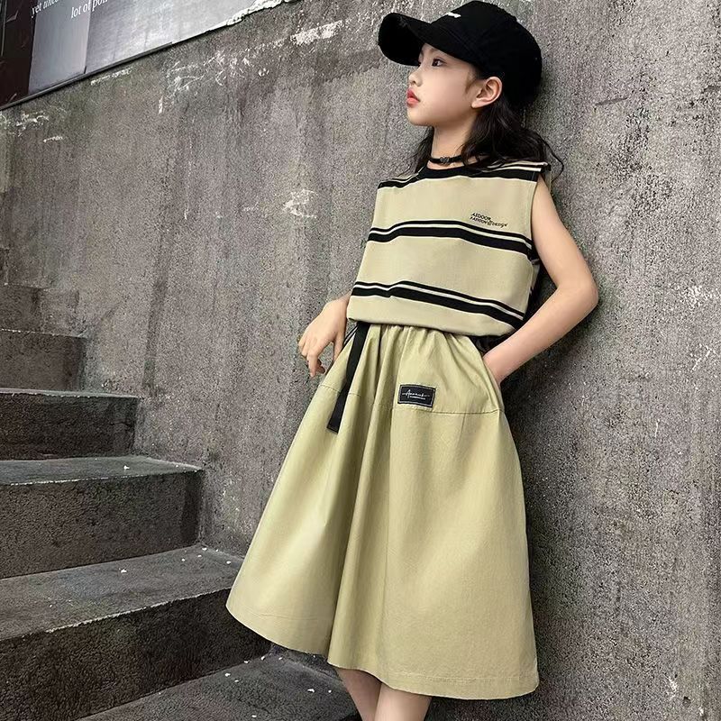 소녀 여름 세트 새로운 패션 세련된 소녀 빅 키즈 어린이 여름 소녀 투피스 트렌디 바지 스커트스토어 가기