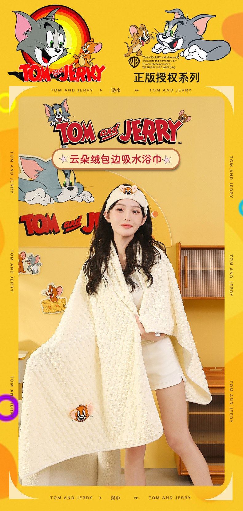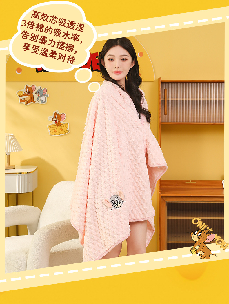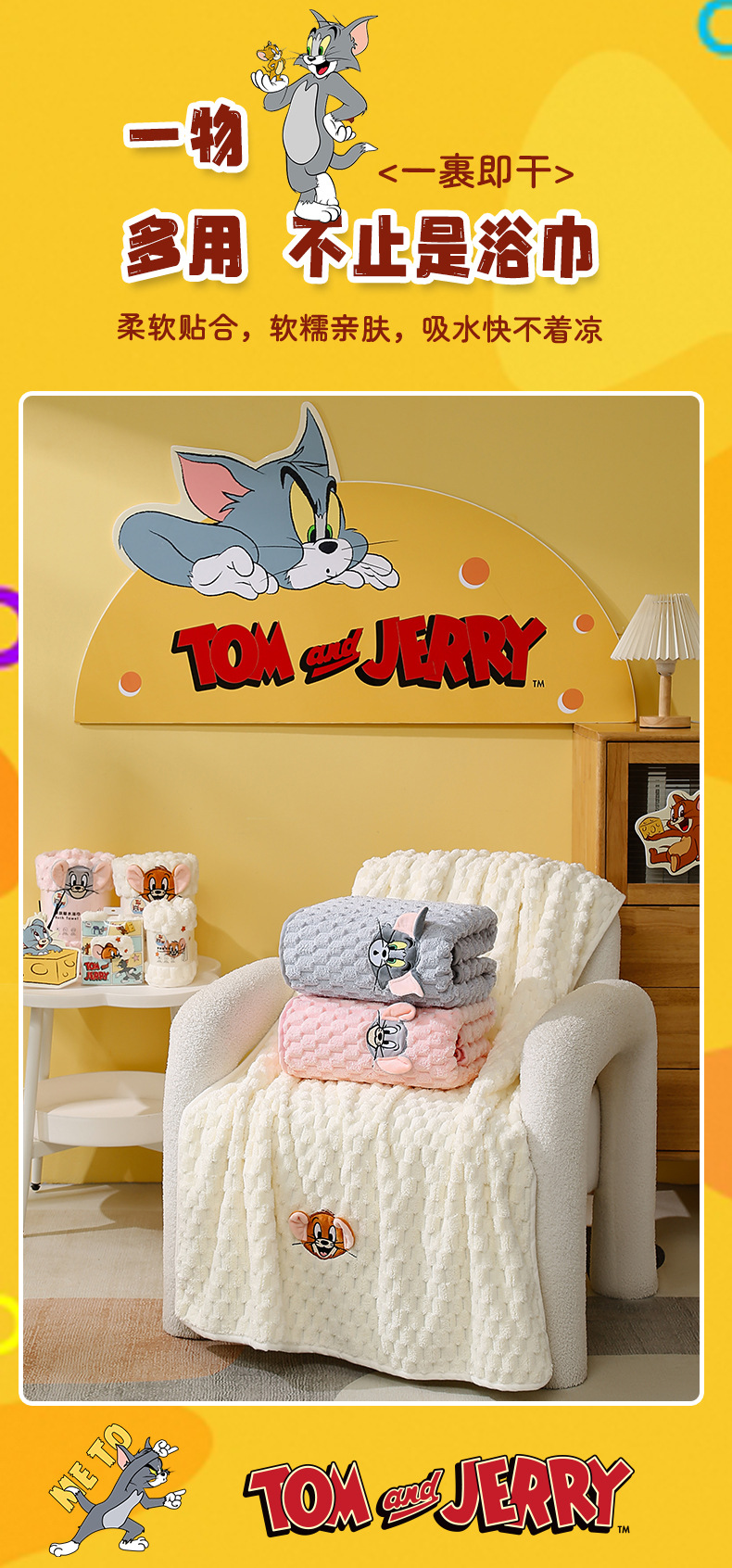 톰과 제리 정품 산호 양털 두꺼운 목욕 타월 흡수성 빠른 건조 비치 타월 가정용 머리없는 목욕 가운
