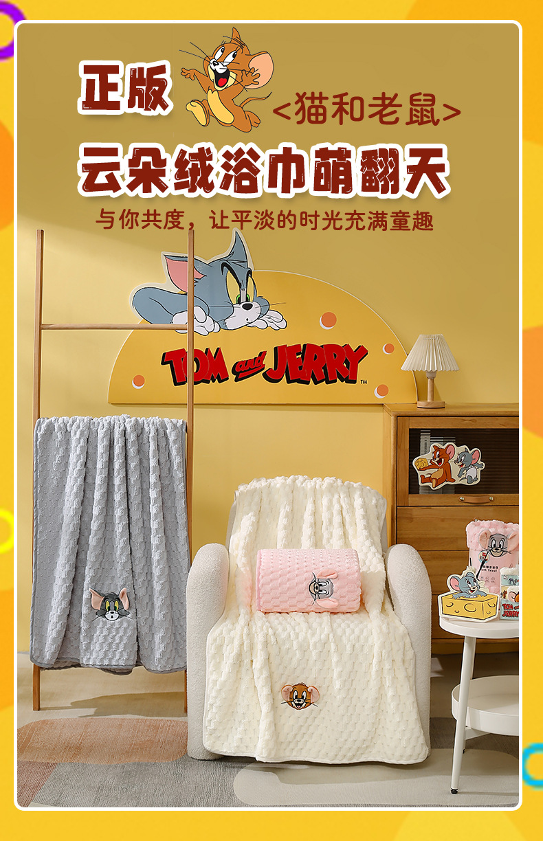 톰과 제리 정품 산호 양털 두꺼운 목욕 타월 흡수성 빠른 건조 비치 타월 가정용 머리없는 목욕 가운스토어 가기
