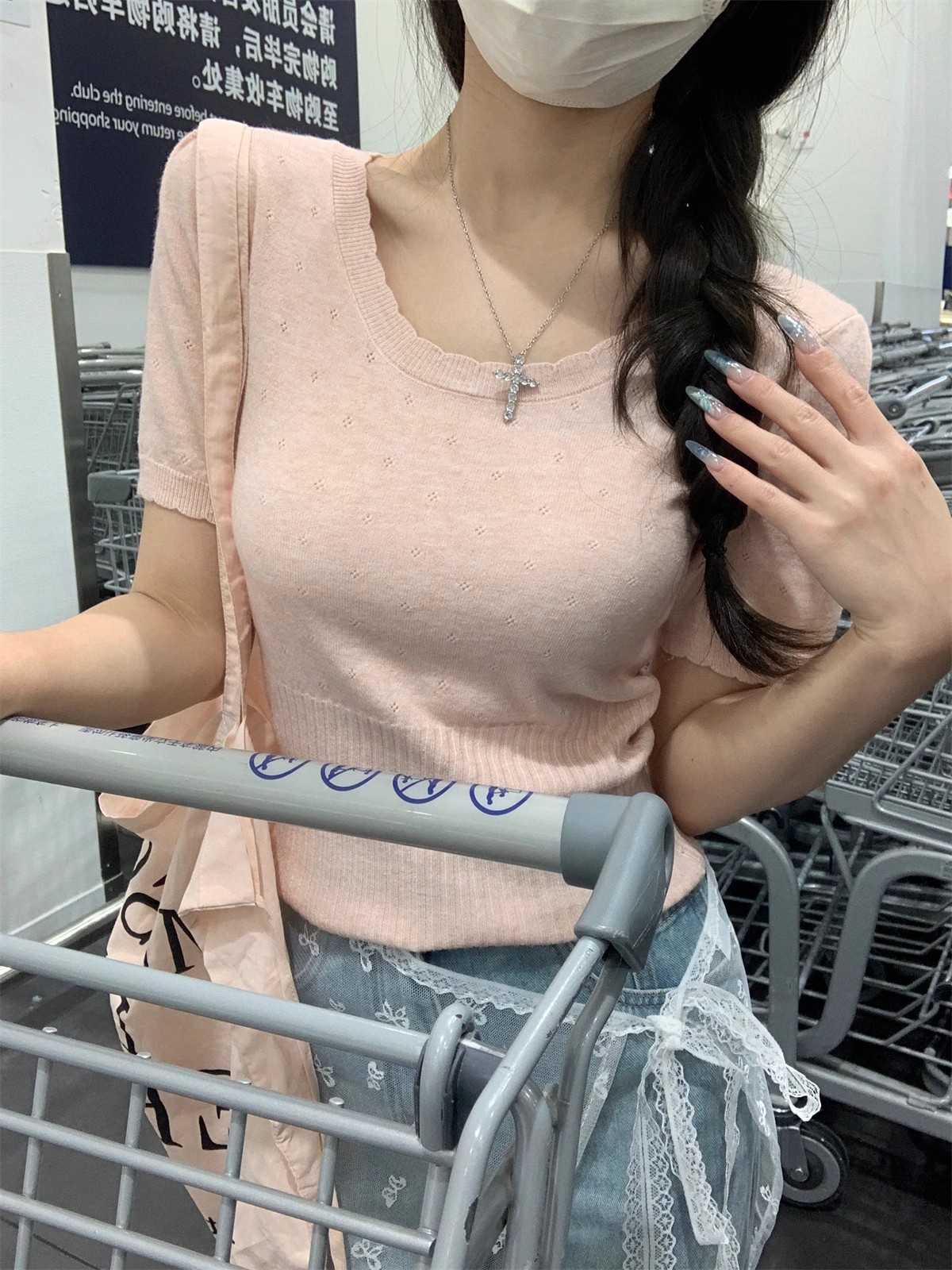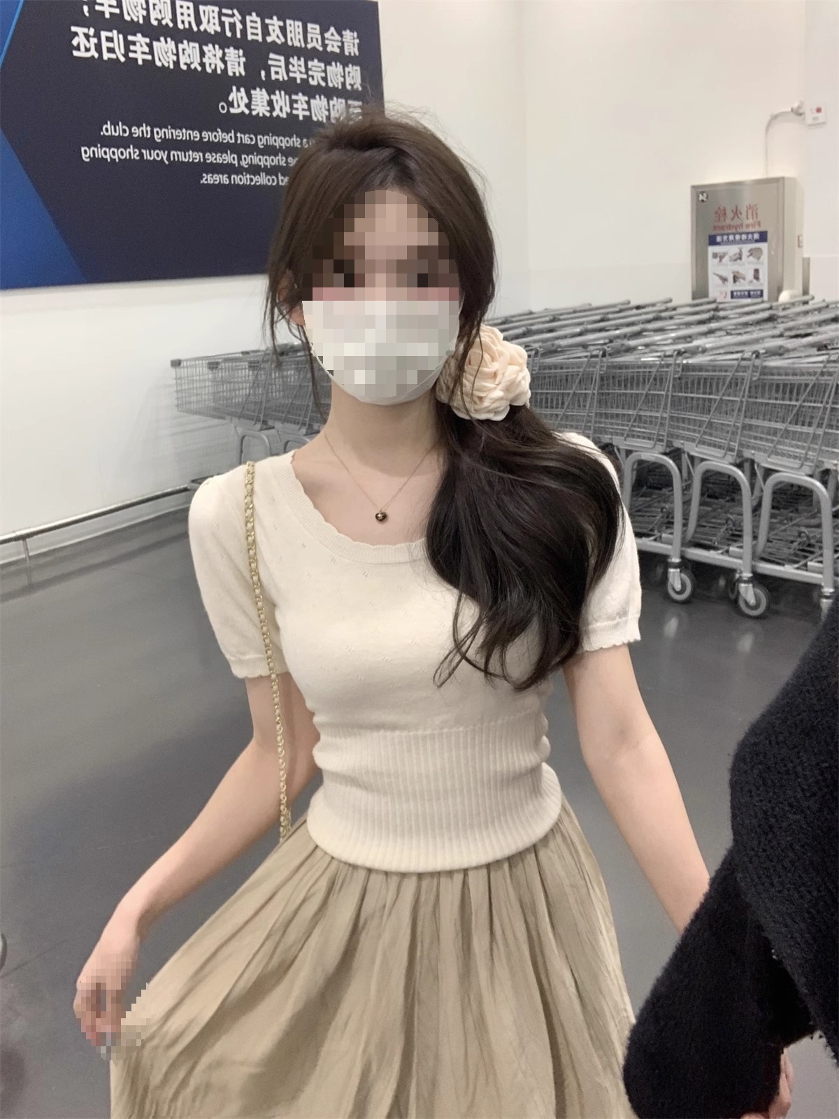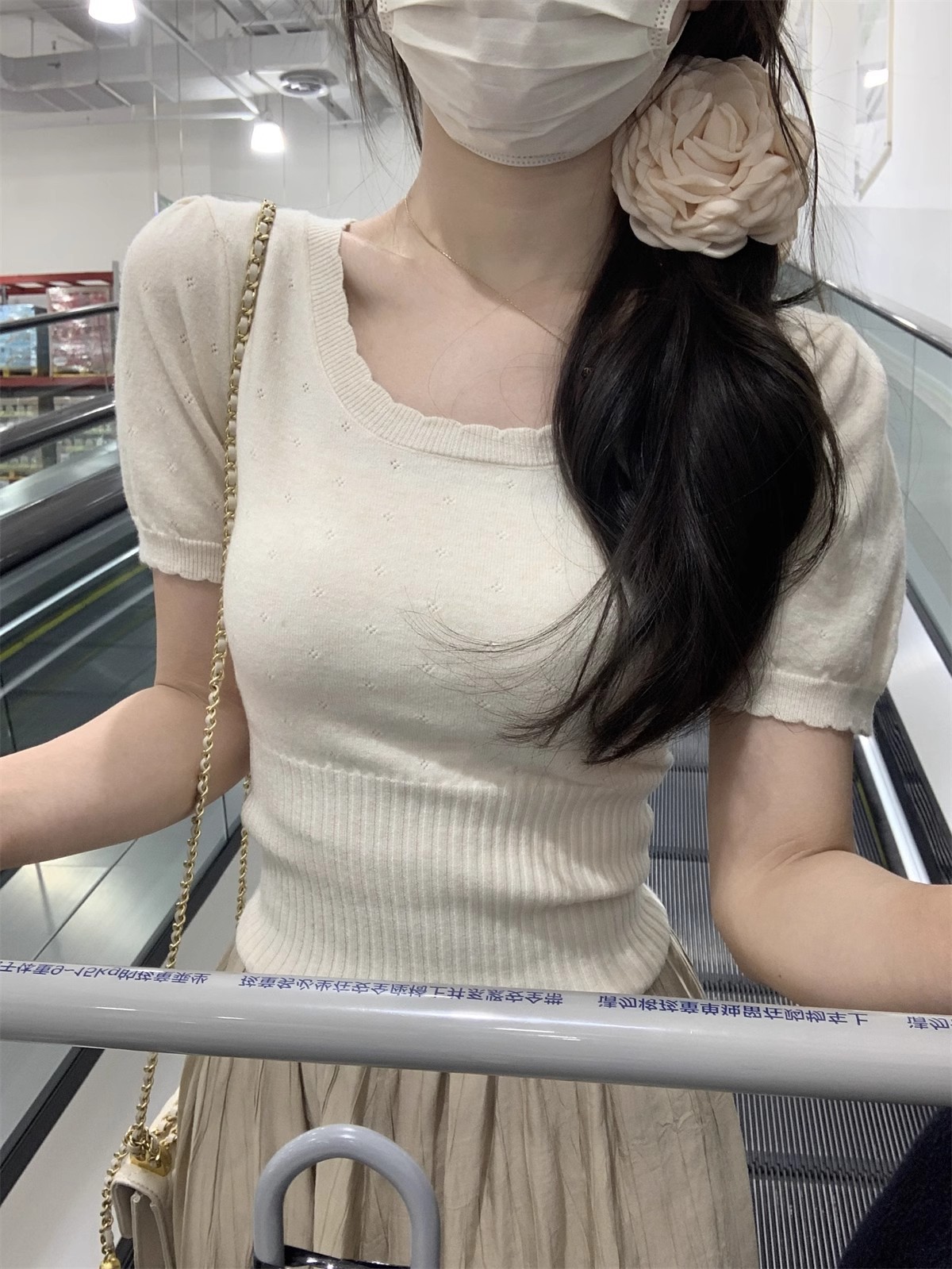 국경 도매 여름 한국 스타일 기질 반팔 니트 스웨터 여성 서양식 달콤하고 핫 슬림 핏 탄성 슬림 핏 이너 탑스토어 가기