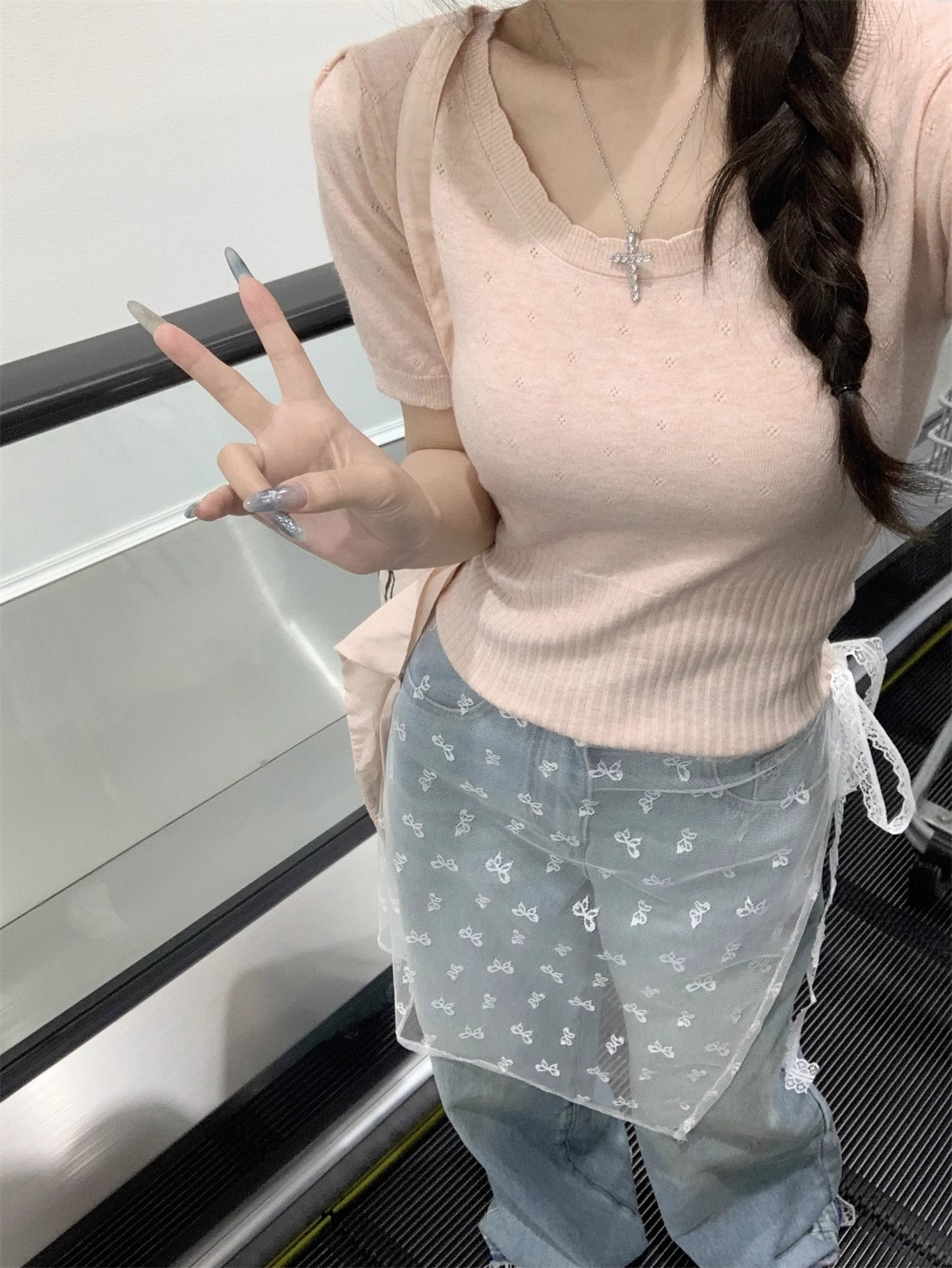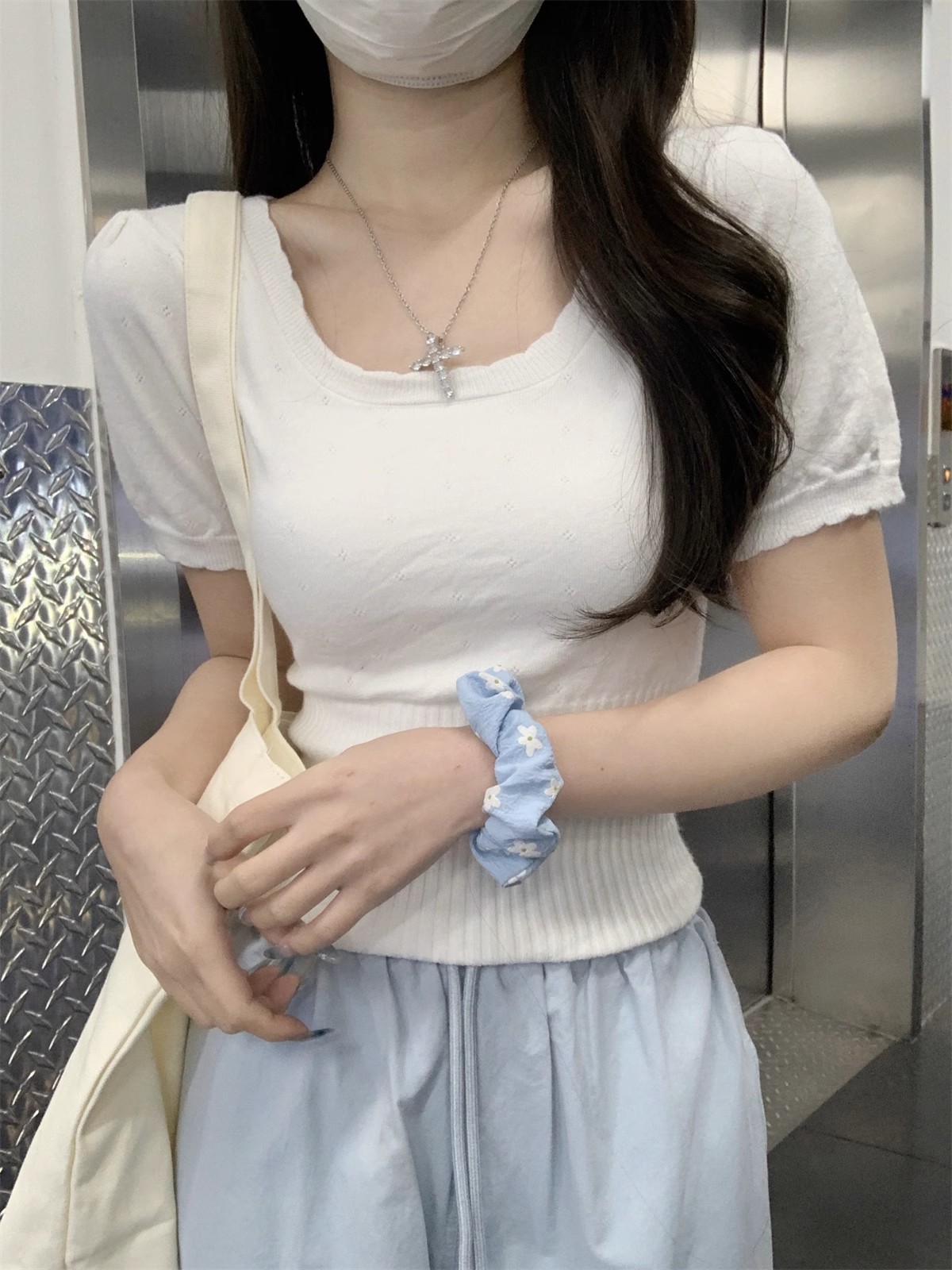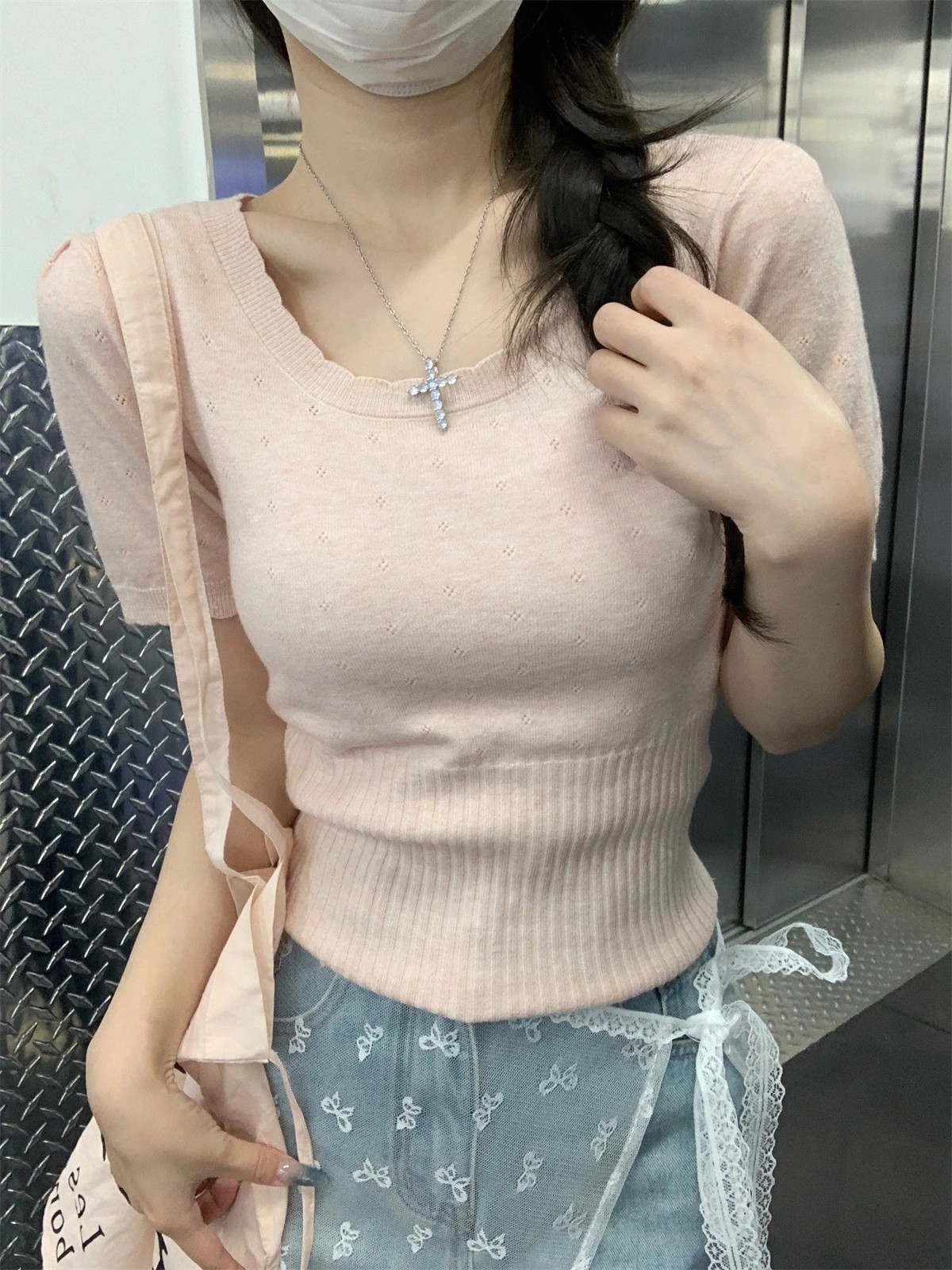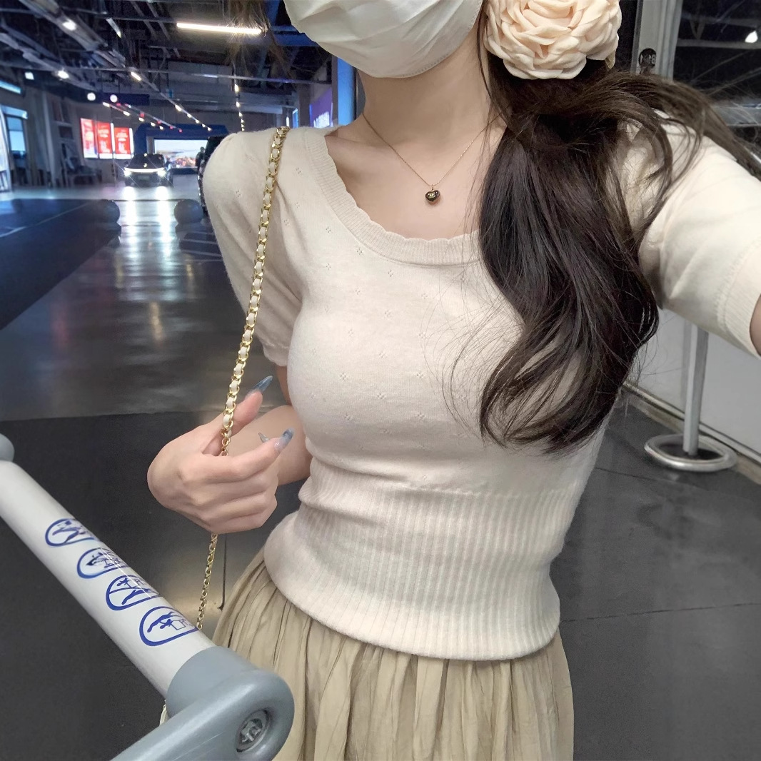 국경 도매 여름 한국 스타일 기질 반팔 니트 스웨터 여성 서양식 달콤하고 핫 슬림 핏 탄성 슬림 핏 이너 탑