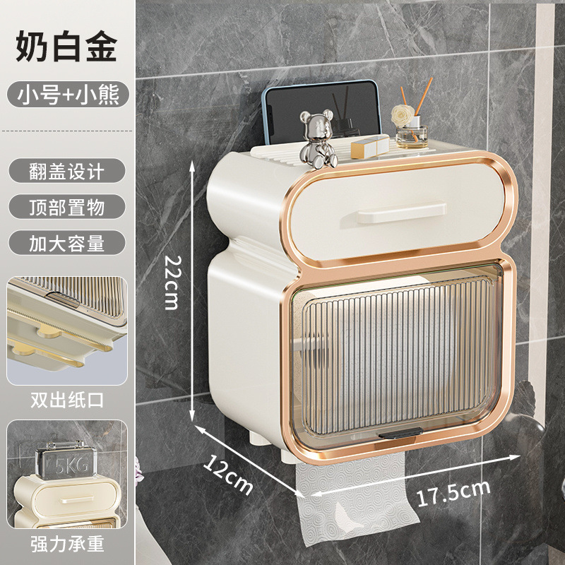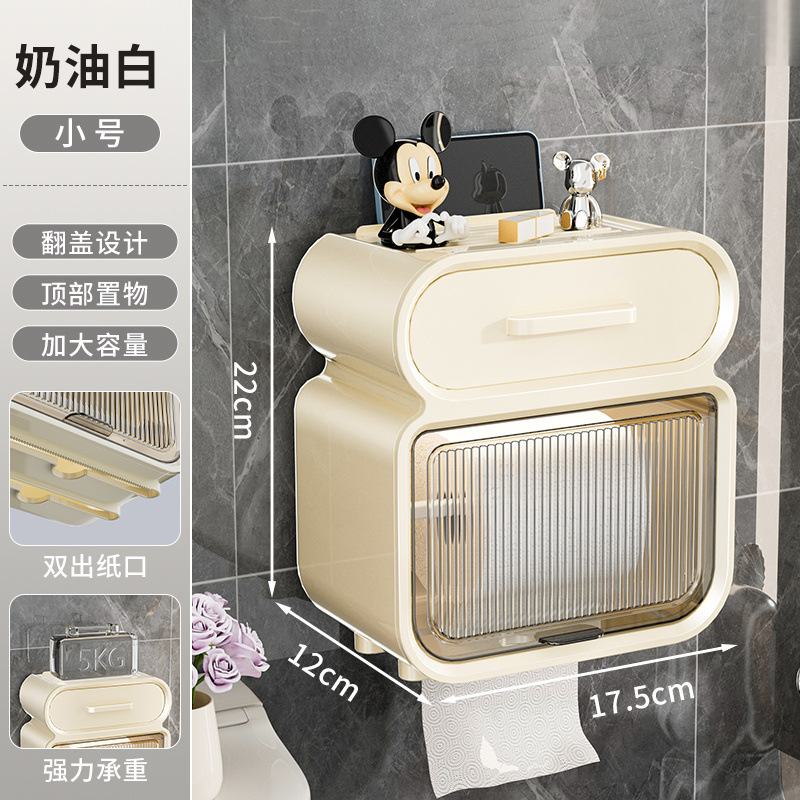 ] 화장지 상자 벽걸이 티슈 박스 비 천공 방수 화장지 상자 화장지 롤 종이 보관