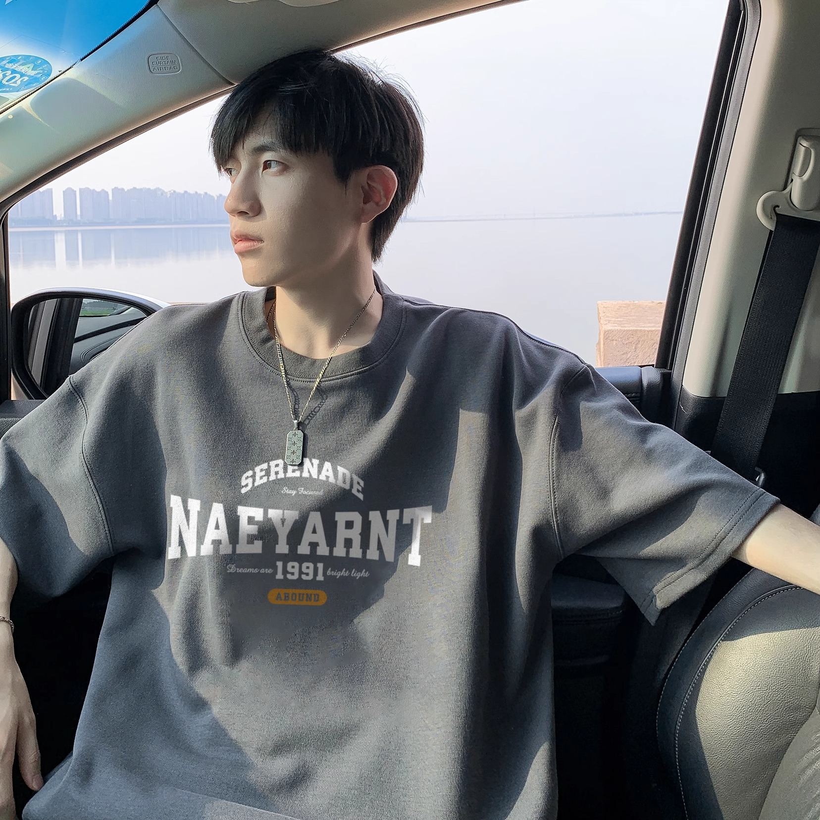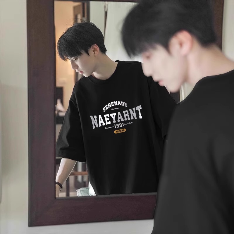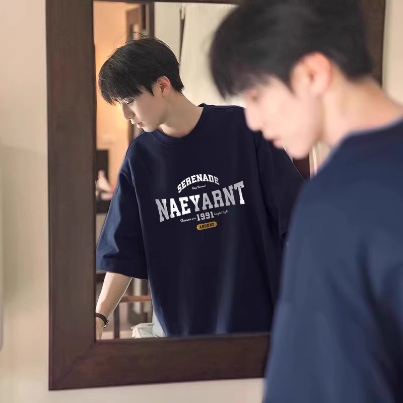 100 퓨어 코튼 봄과 여름 코스트사이즈 느슨한 느슨한 반소매 티셔츠 남성용 레트로 홍콩 스타일 Ins Letter 반팔 티셔츠 새로운 도착 느슨한 반소매스토어 가기
