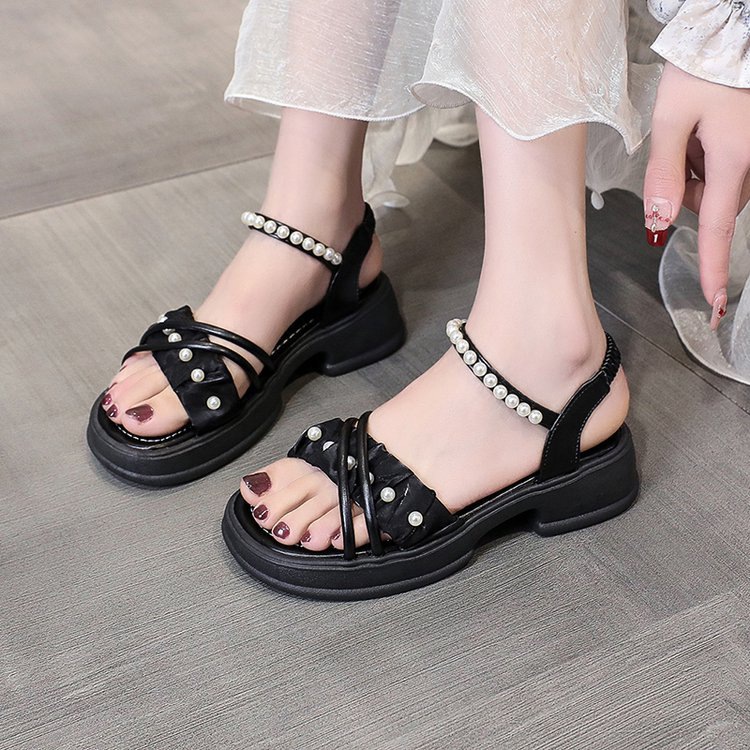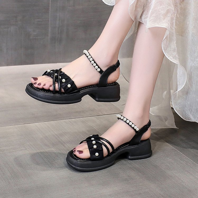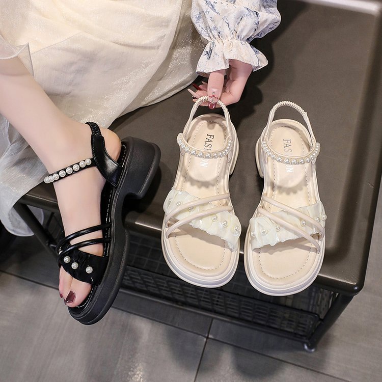 여자 여름 2025 새로운 올 매치 두꺼운 밑창 여성 신발 부드러운 밑창 탄성 패션 샌들스토어 가기