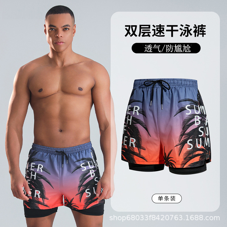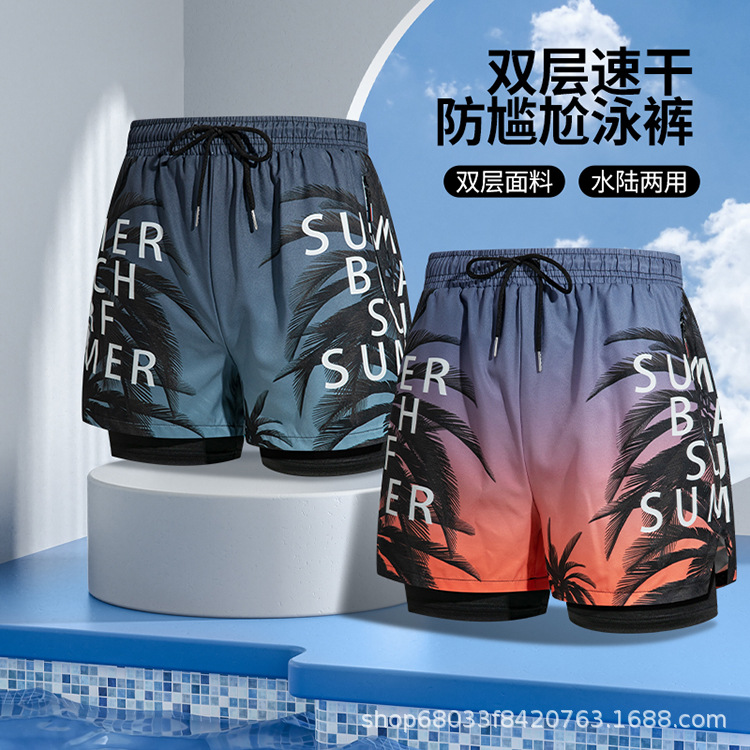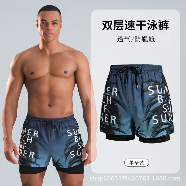 해변 바지 남자 빠른 건조 더블 레이어 지퍼 5 점 수영 트렁크 느슨한 플러스 사이즈 해변 휴가 레저 수영 트렁크 2025스토어 가기