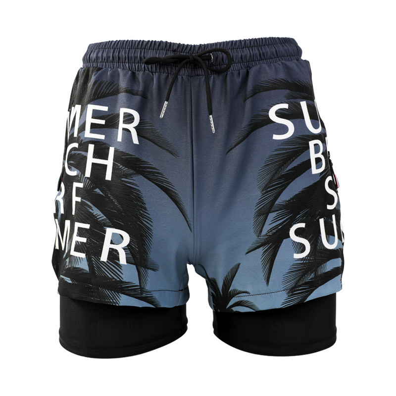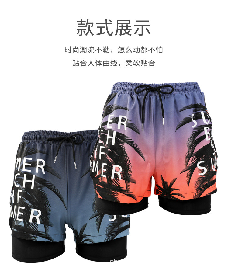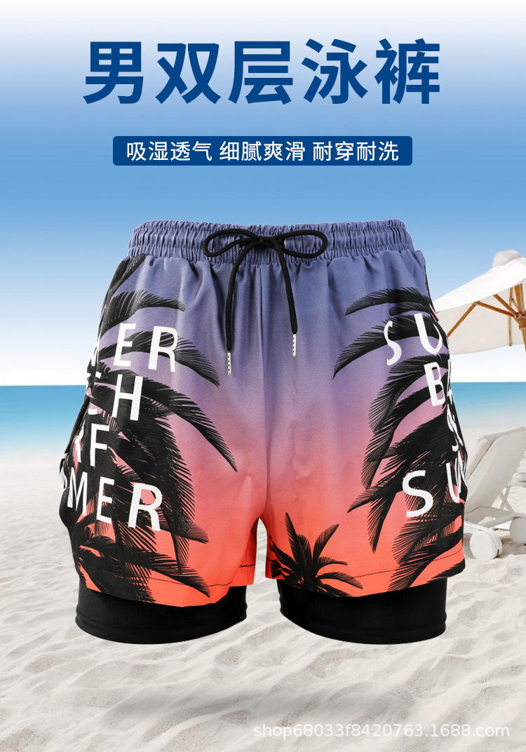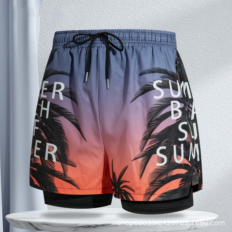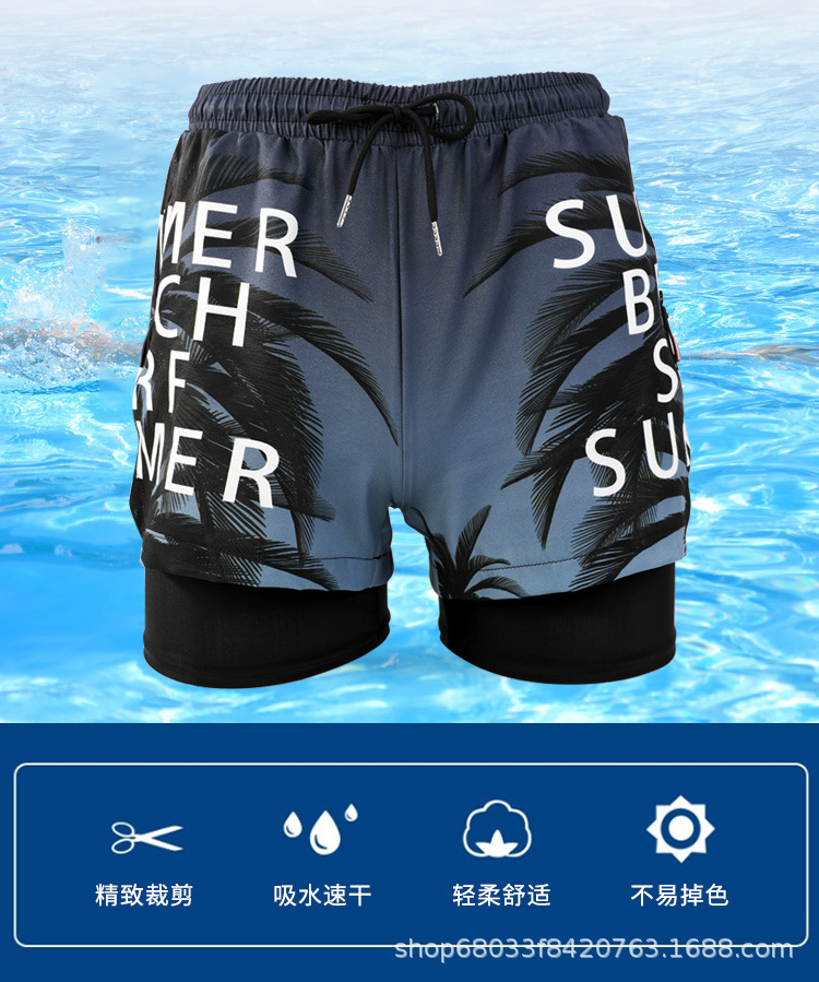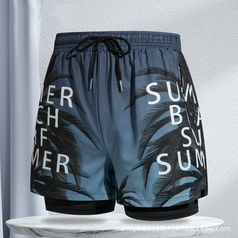 해변 바지 남자 빠른 건조 더블 레이어 지퍼 5 점 수영 트렁크 느슨한 플러스 사이즈 해변 휴가 레저 수영 트렁크 2025
