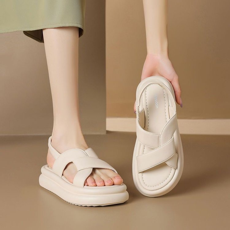 폭발성 탄성 스트랩 샌들 여성 2025 년 새로운 여름 아우터 착용 요정 스타일 스커트 스포츠 레저 비치 슬리퍼