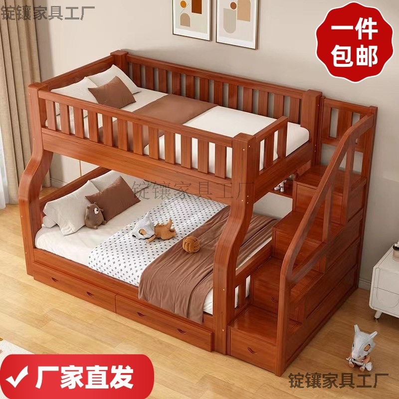 단단한 나무 침대 성인 더블 침대 나무 침대 높고 낮은 침대 테이블 작은 아파트 다기능 어린이 엄마와 아이 침대스토어 가기