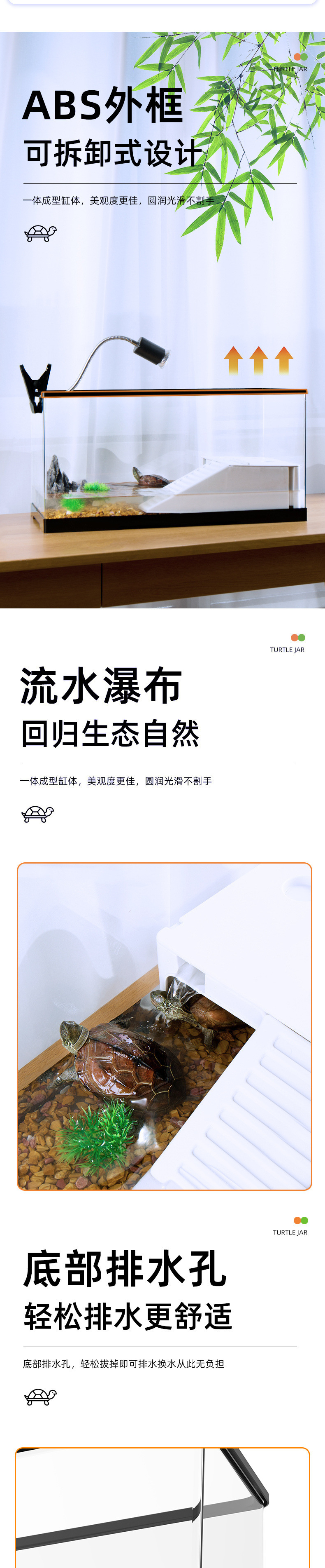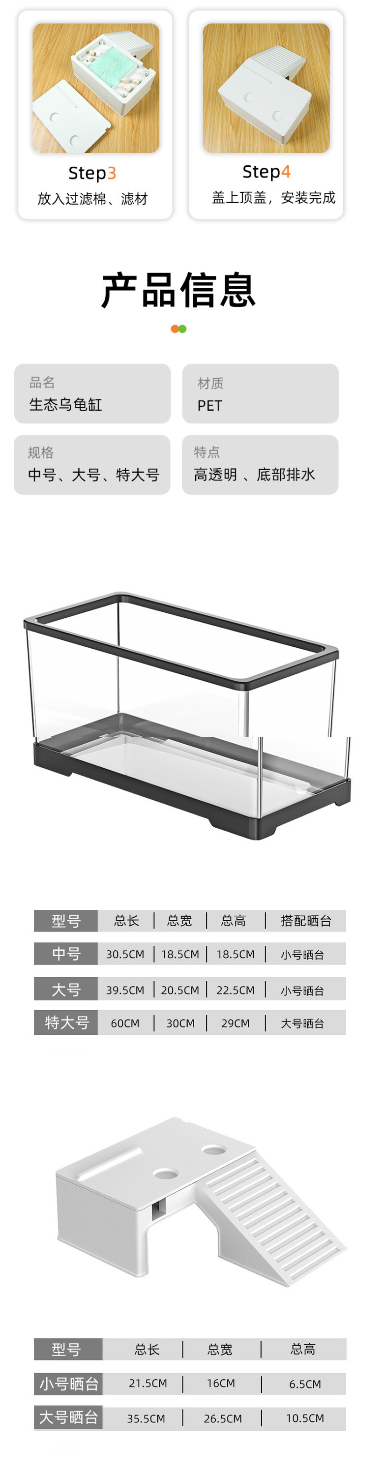 거북이를 키우기위한 거북이 탱크 생태 탱크 특수 크기 브라질 거북이 물 및 토지 가정용 물 순환 거북이 상자 태양 테이블스토어 가기