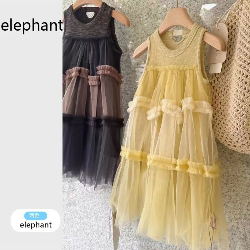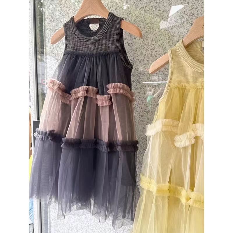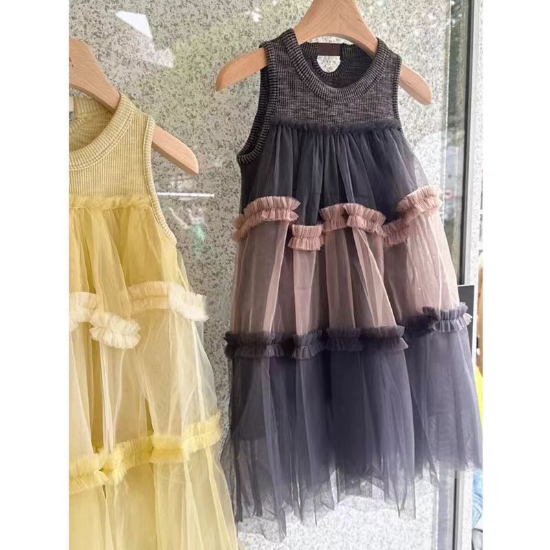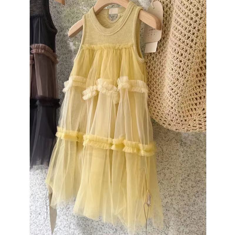 한국 아동복 어린이 조끼 치마 25 봄과 여름 소녀 원피스 신선한 휴가 스타일 나무 귀 메쉬 공주 치마스토어 가기