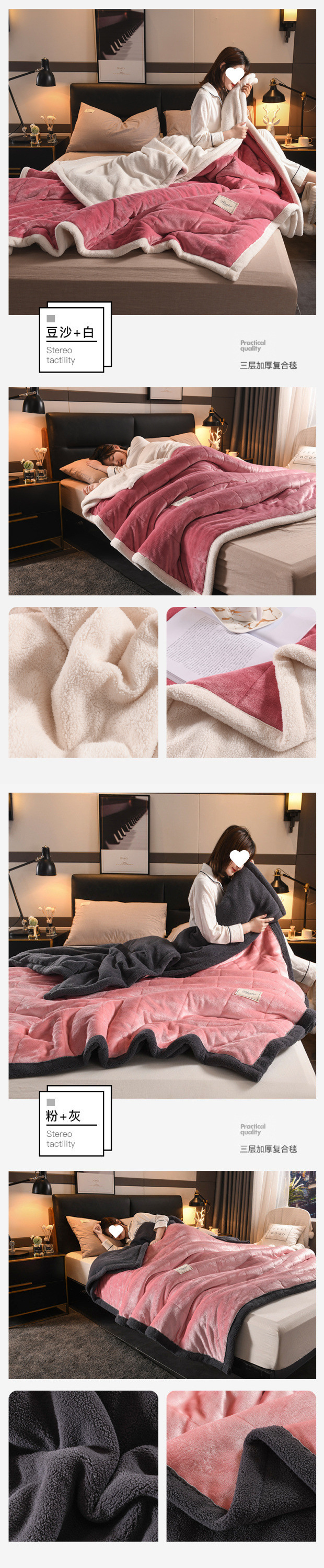 3 층 담요 두꺼운 겨울 담요 담요 양가죽 기숙사 이불 따뜻한 더블 싱글 담요