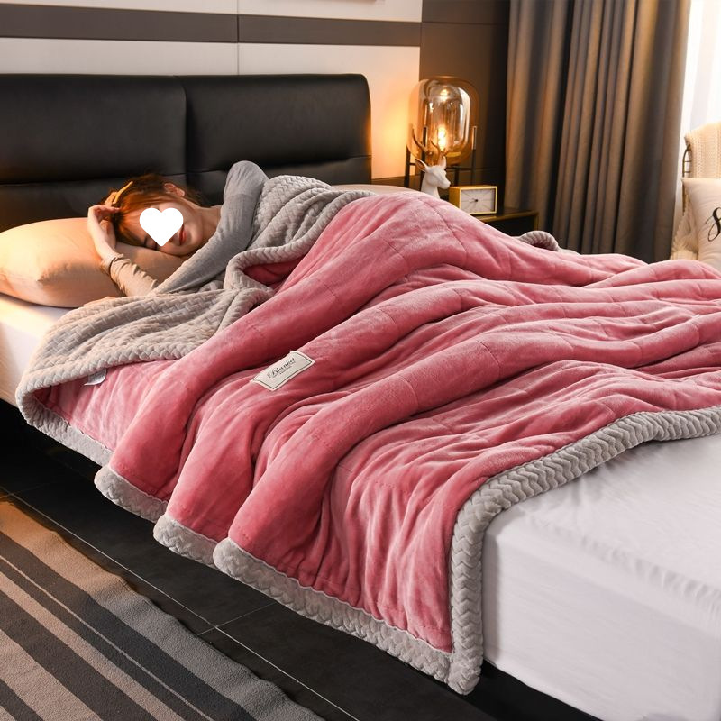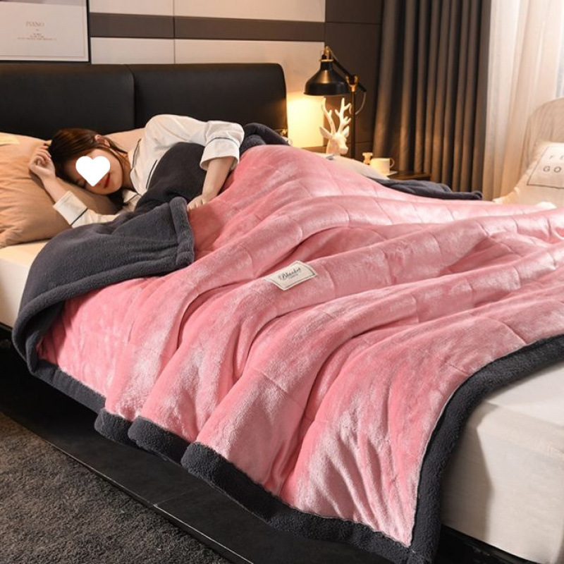 • 핑크+그레이-골드 밍크벨벳+램벨벳-200*230cm [3겹 누빔두꺼움]
