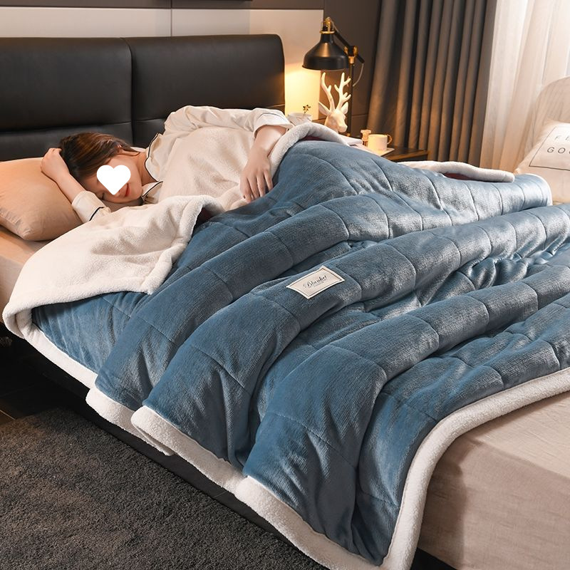• 블루그레이+화이트-골드밍크벨벳+베이베이벨벳-180*200cm [3겹 누빔두꺼움]