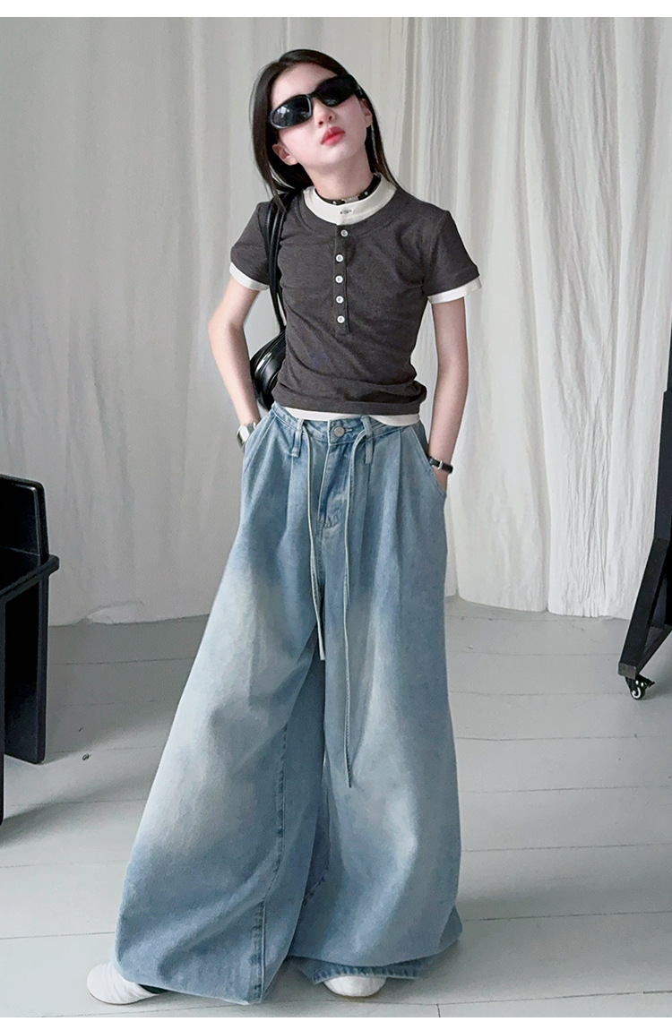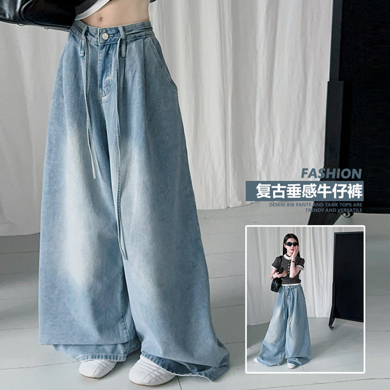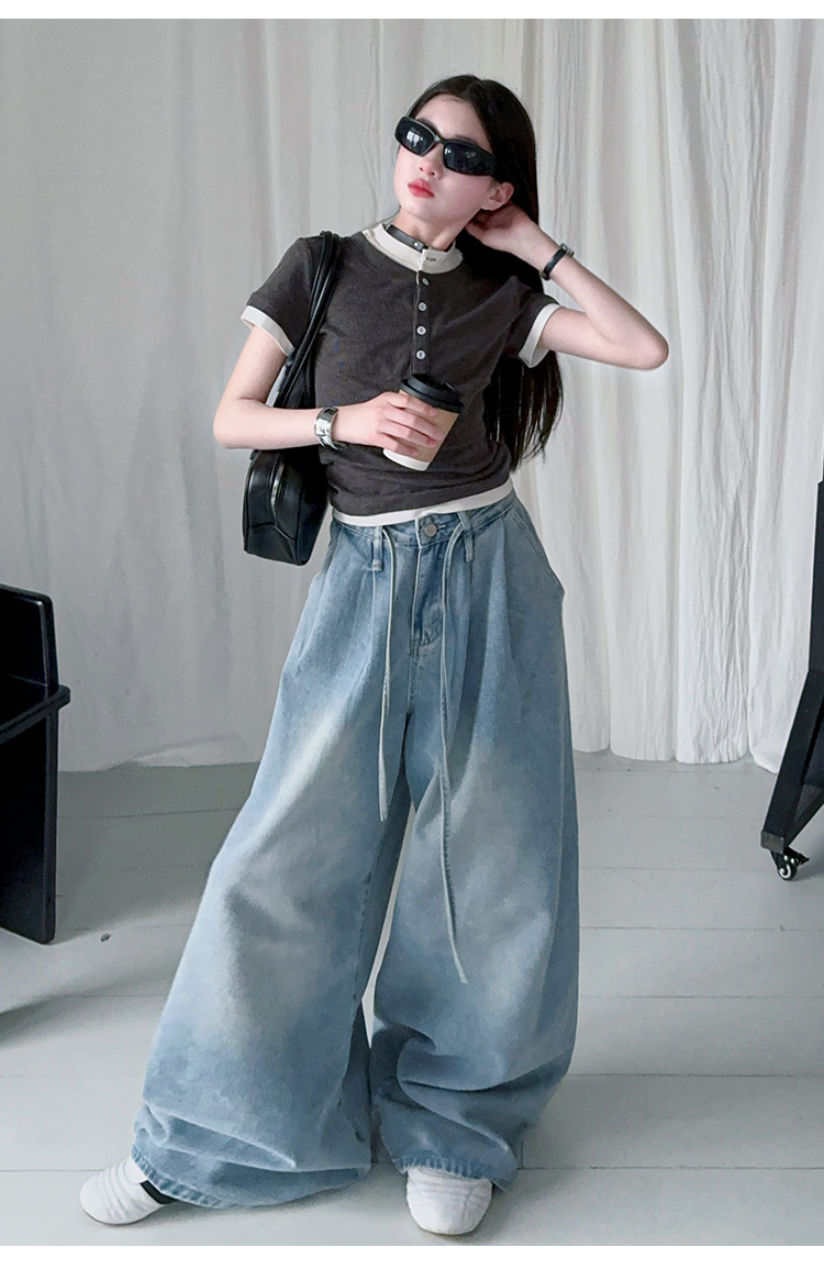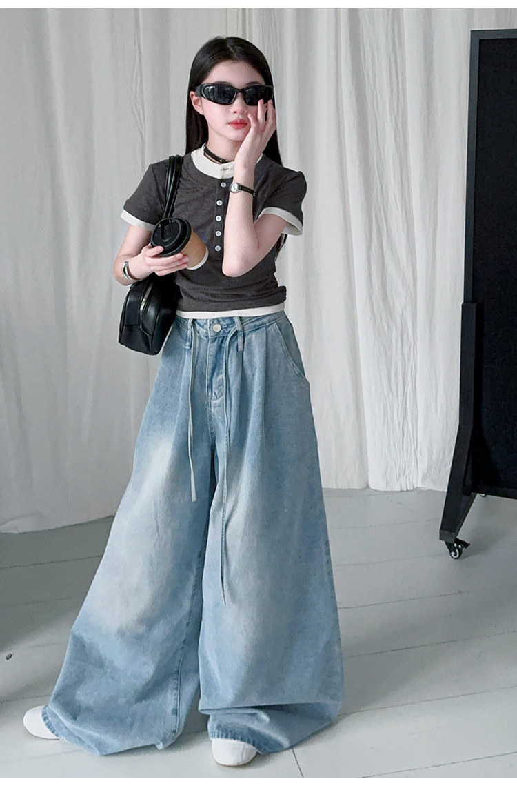 소녀 높은 허리 넓은 다리 청바지 2025 여름 새로운 한국 스타일 중대형 키즈 느슨한 슬리밍 게으른 스타일 트렌디 바지스토어 가기