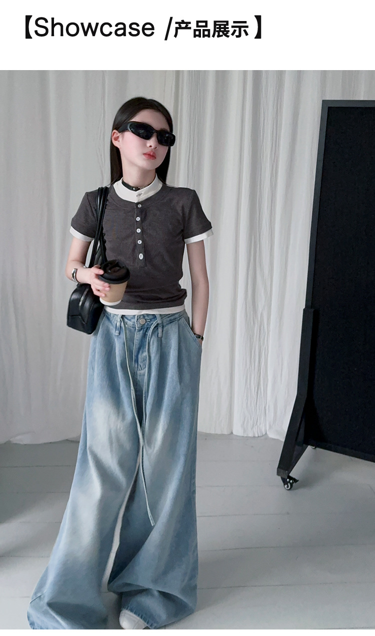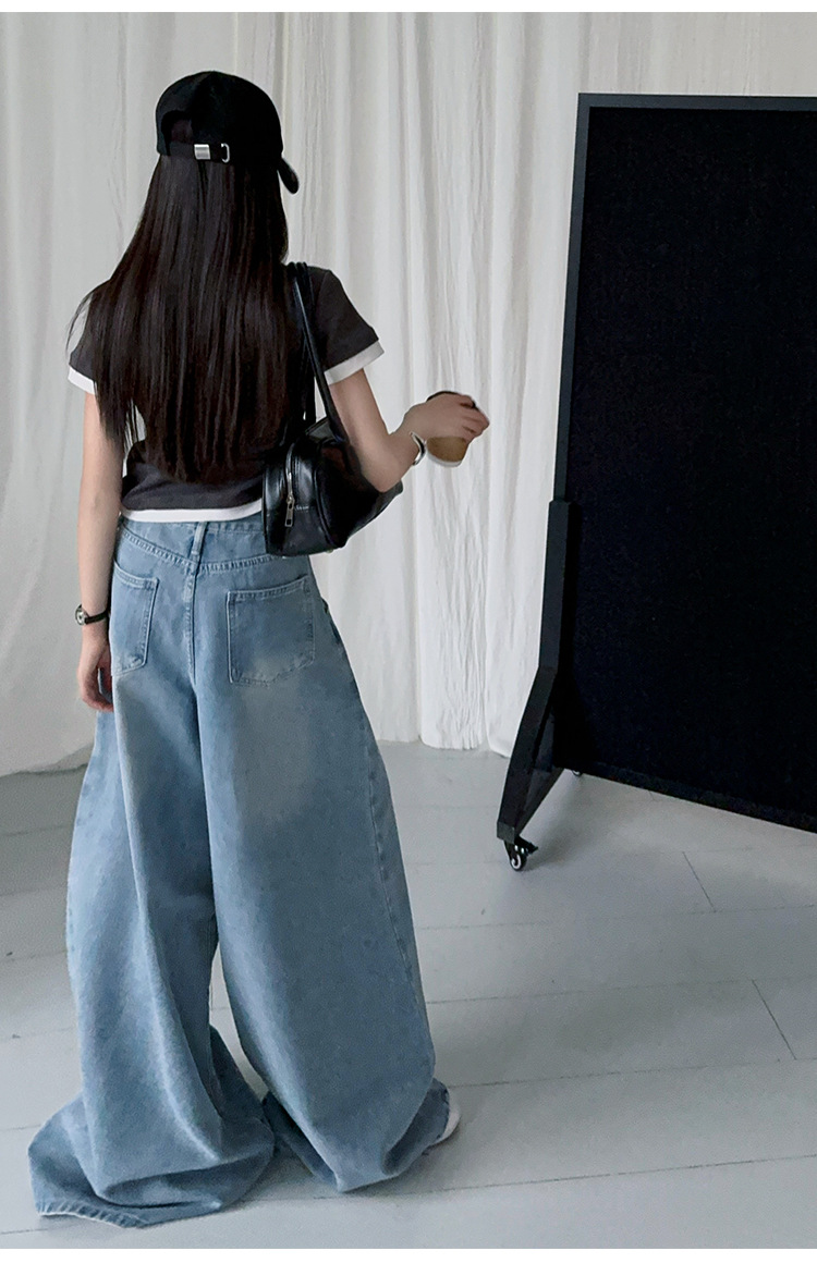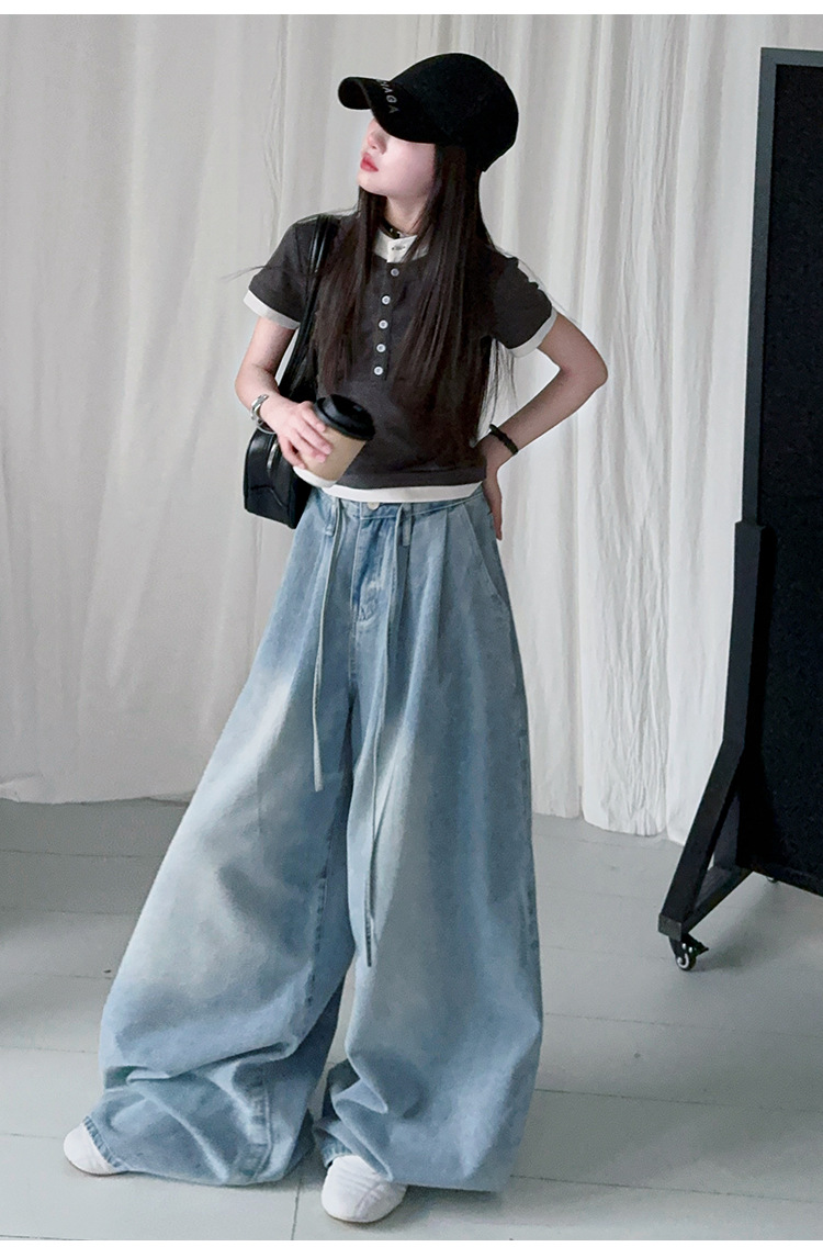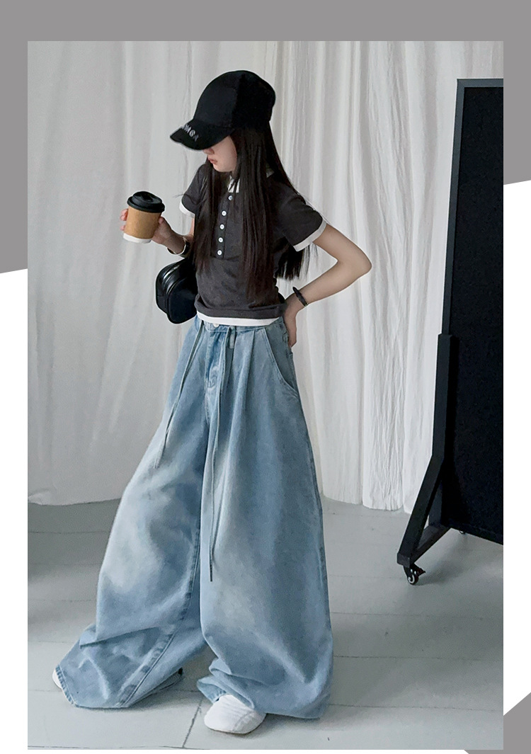 소녀 높은 허리 넓은 다리 청바지 2025 여름 새로운 한국 스타일 중대형 키즈 느슨한 슬리밍 게으른 스타일 트렌디 바지스토어 가기