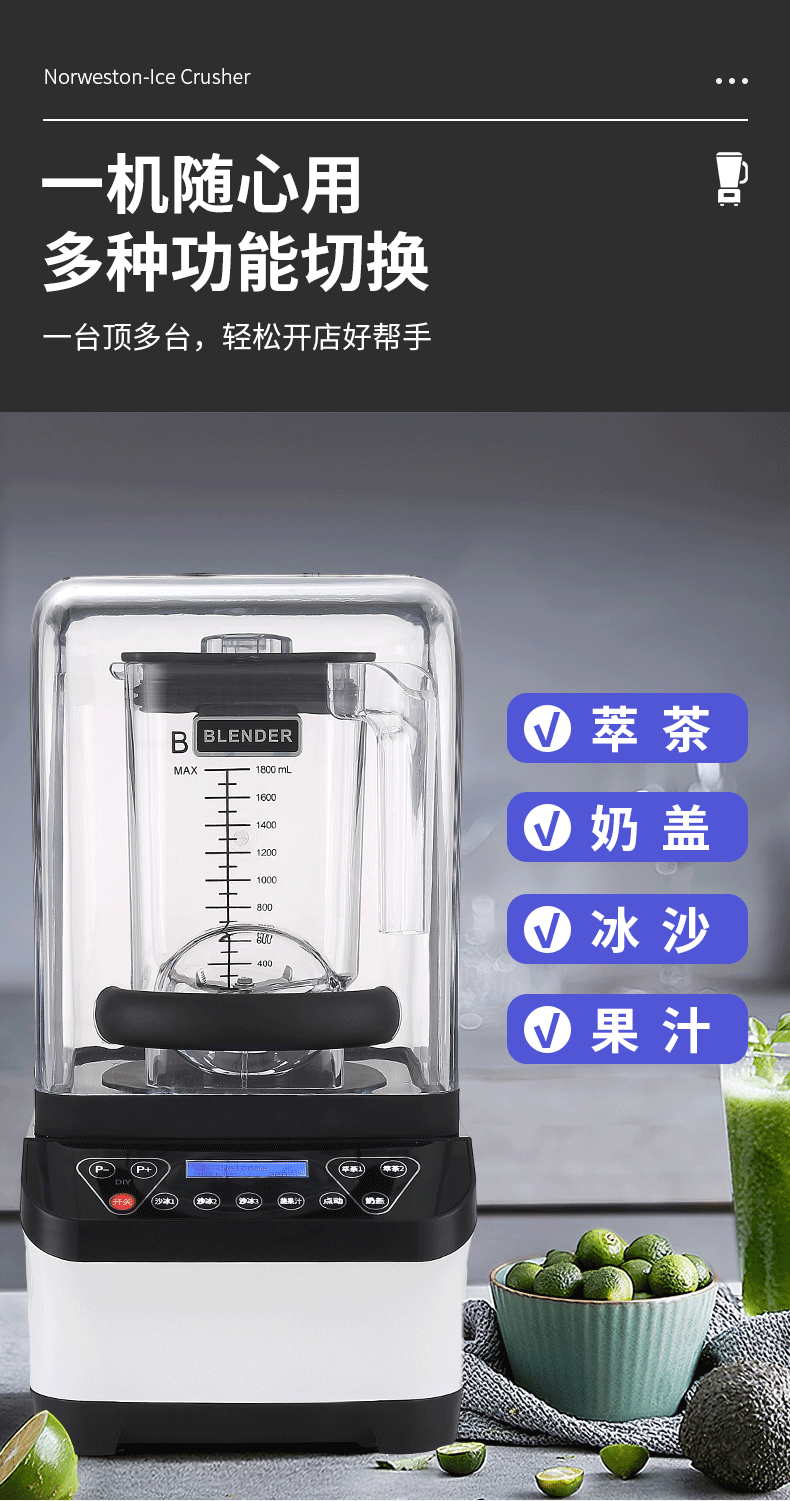 Deliba M8 상업용 스무디 머신 밀크 티 샵 자동 밀크 쉐이크 아이스 크래커 방음 커버 티 쥬서스토어 가기