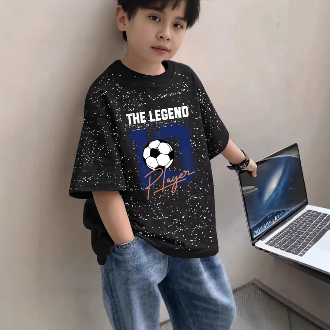 남학생 코튼 반팔 티셔츠 2024 여름 중대형 어린이 캐주얼 핸섬 아동복 소년의 별 반소매 탑스토어 가기