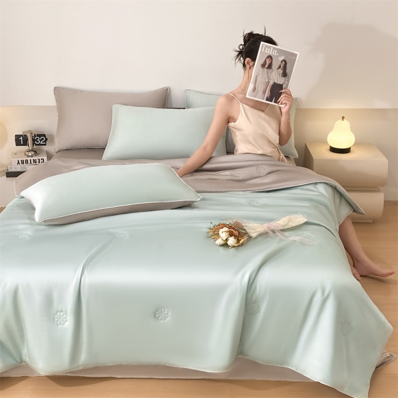 클래스 A 여름 세탁 실크 여름 쿨 퀼트 4 피스 기계 세탁기 부드러운 슬리핑 알몸 에어컨 퀼트 아이스 실크 얇은 이불스토어 가기