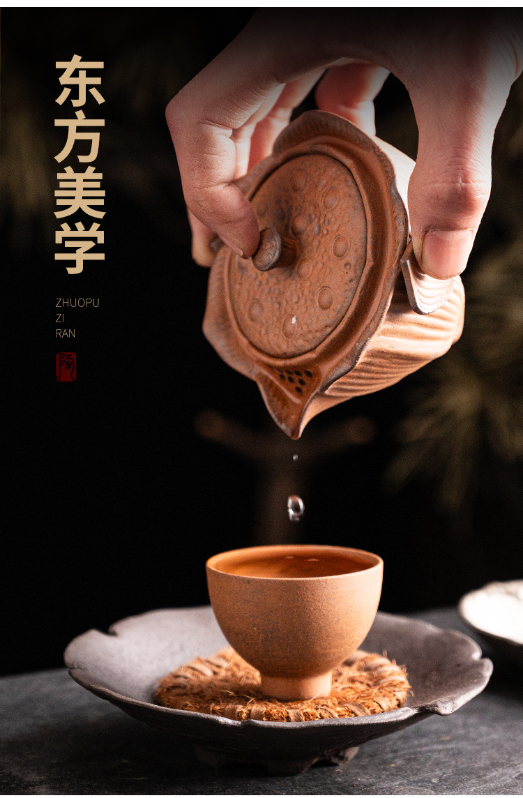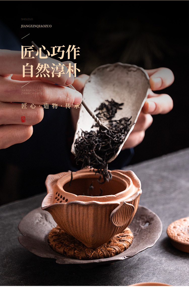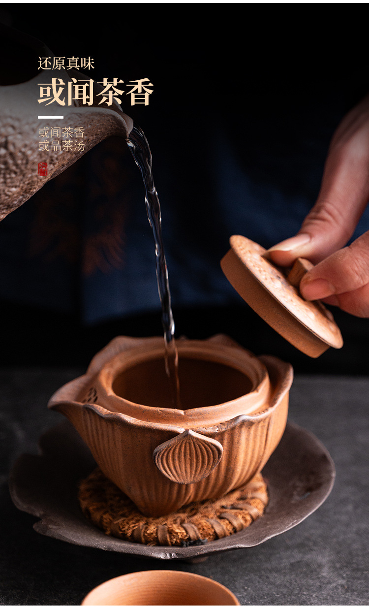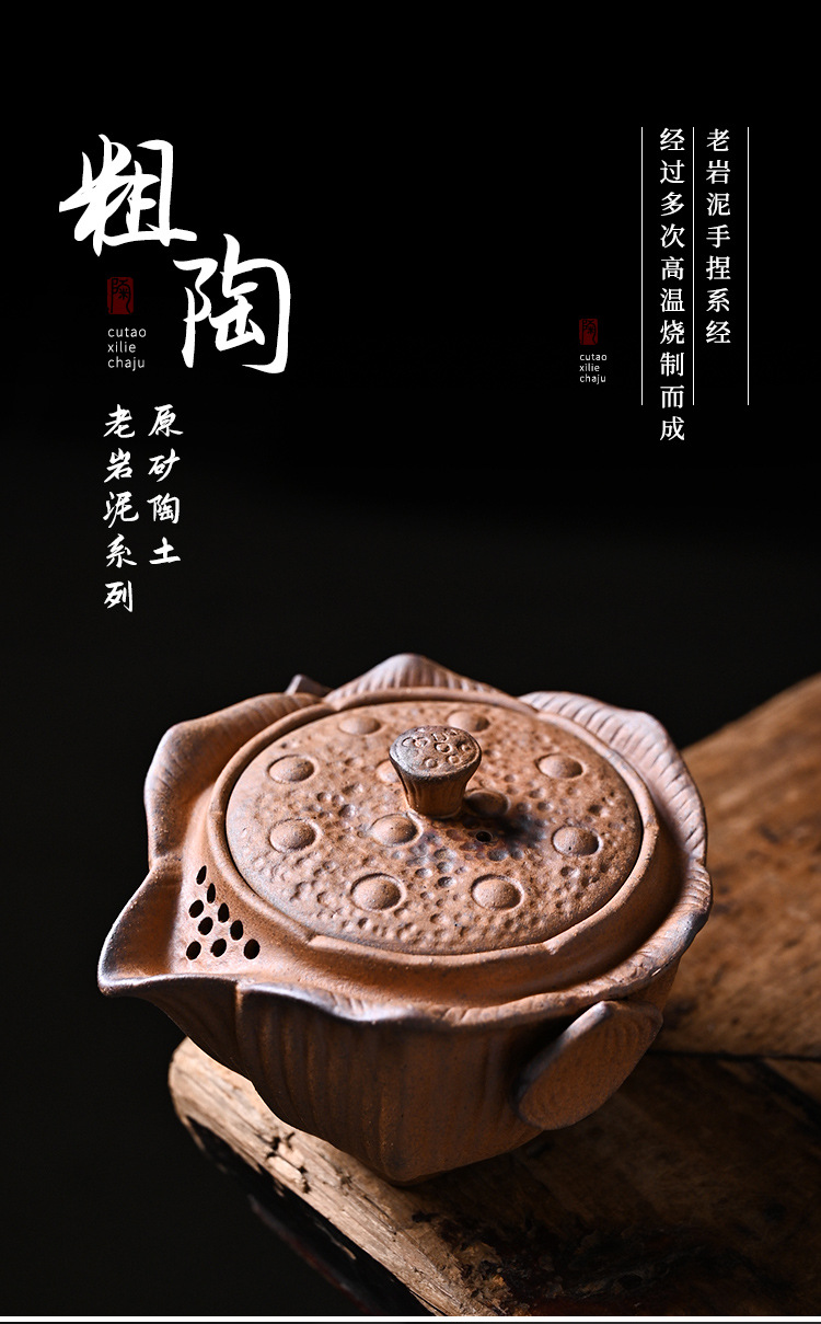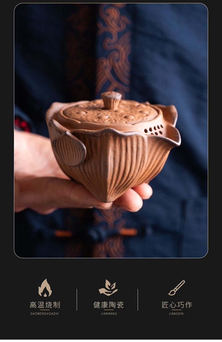Chenxiang Coarse Pottery Lotus Canopy 핸드 헬드 팟 커버 보울 1 인 가정용 3 인재 보울 티 메이커 올드 록 머드 주전자 핫