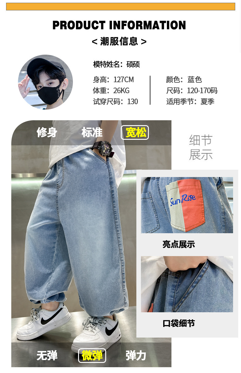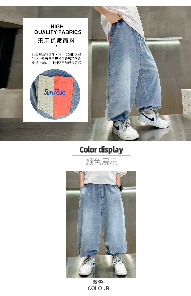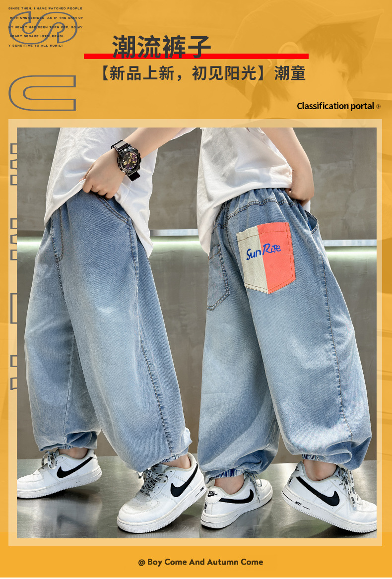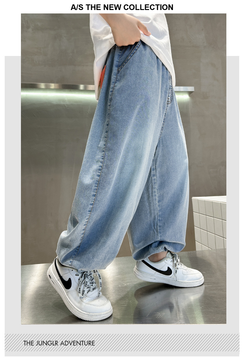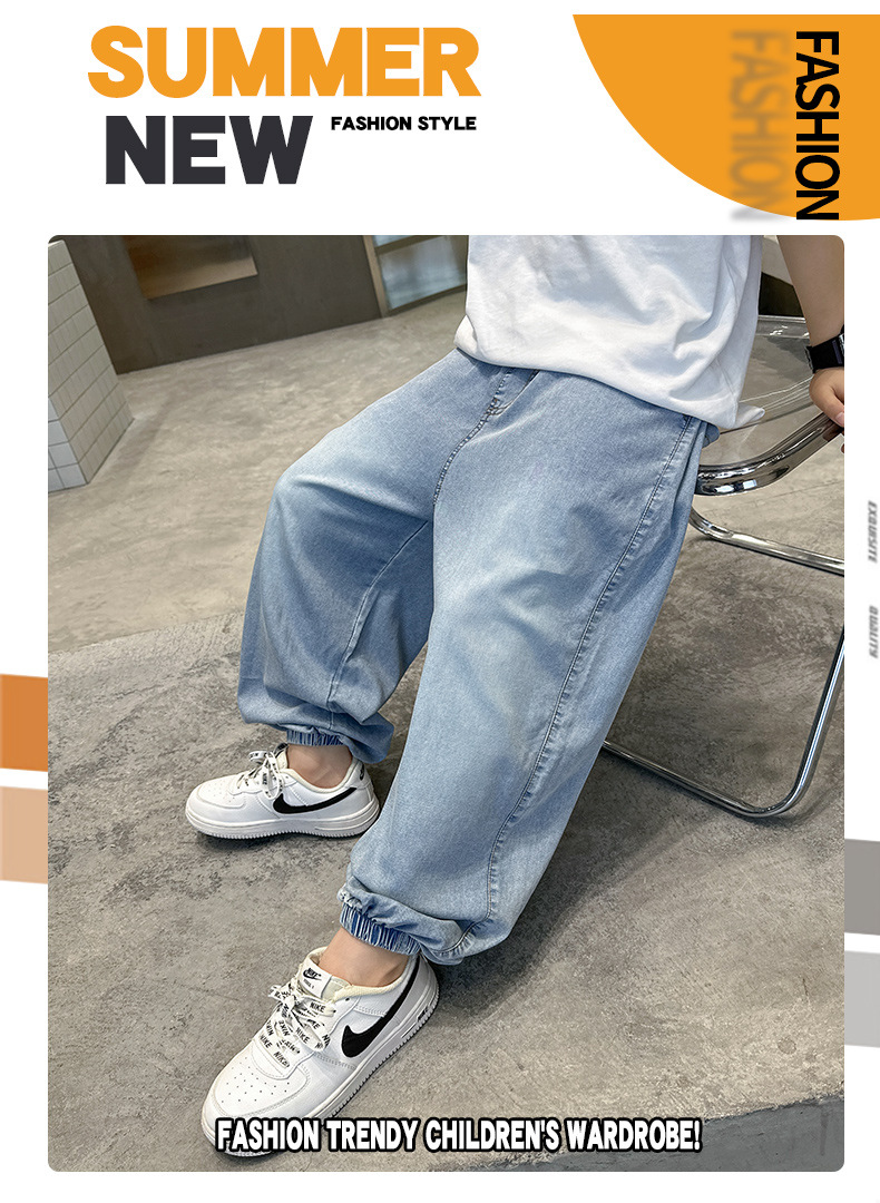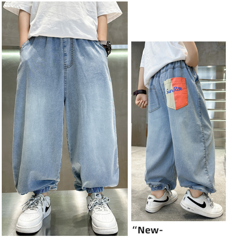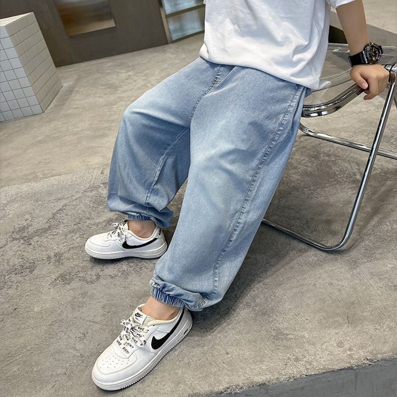 소년 여름 청바지 2025 새로운 여름 바지 큰 아이들과 소년 여름 바지 유행 시원하고 잘 생긴스토어 가기