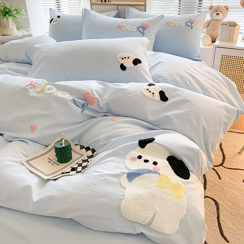 • 자수 모델 - 해피 클라우드 독 - 라이트 블루 100% 신장 면 원단과 귀여운 털