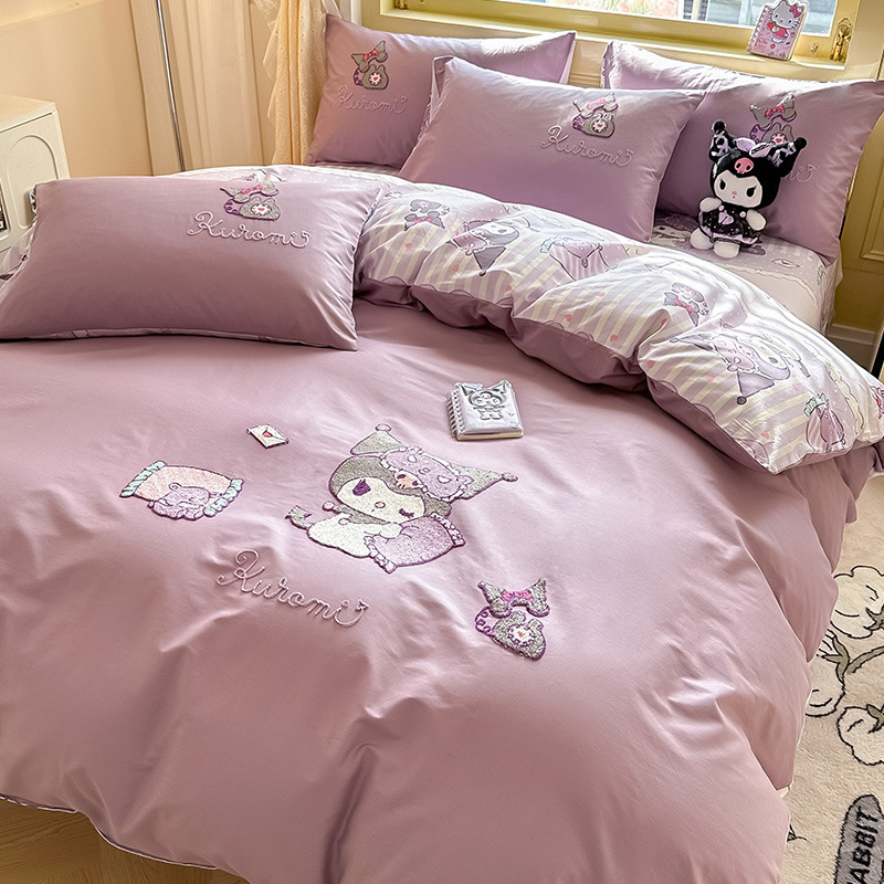 • 자수모형 - 굿나잇 쿠로미 - 연보라색 100% 신장면 원단 귀여운 울