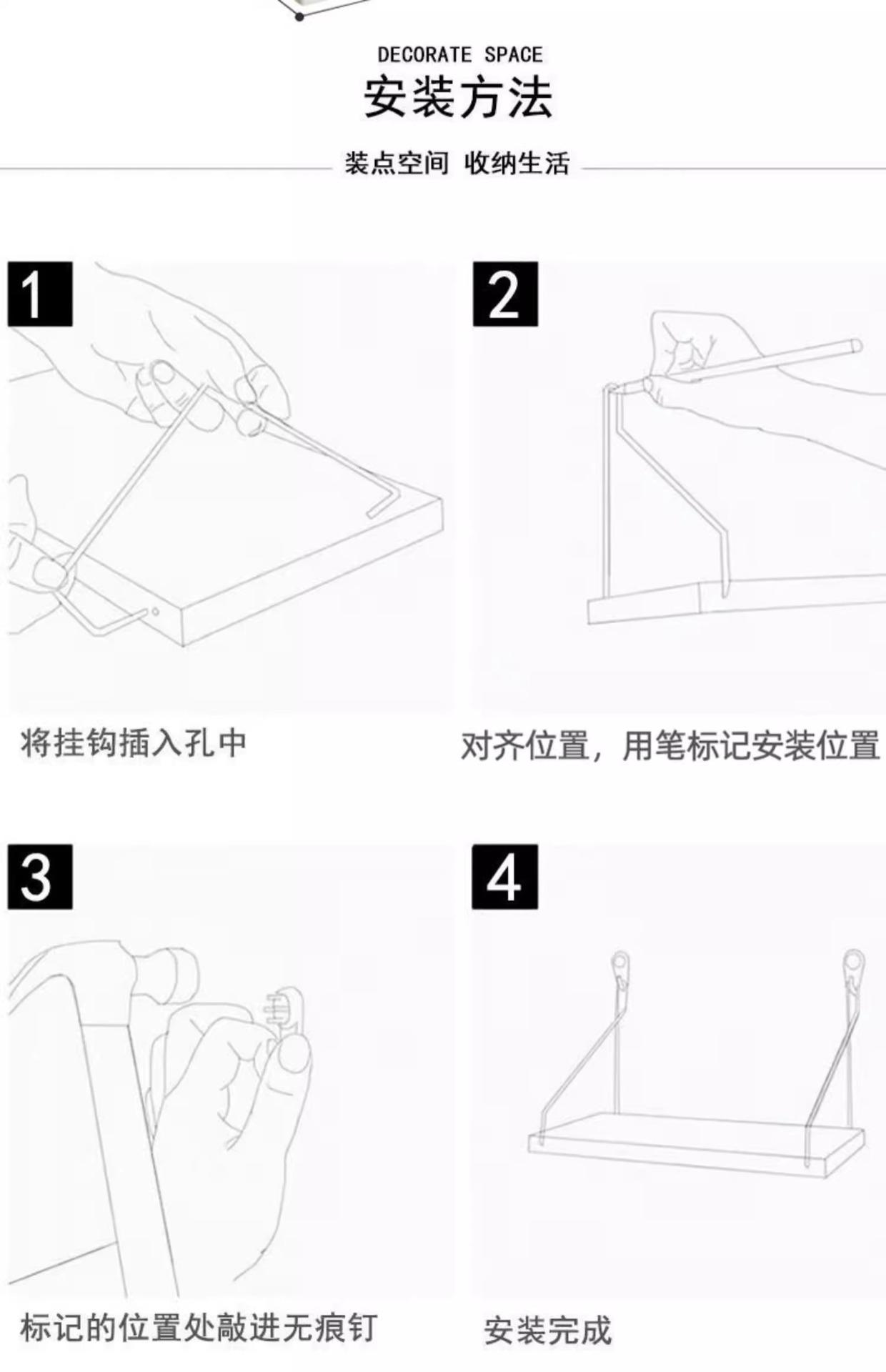 • 30X24cm 화이트 [무료 흔적없는 못 + 나사 스티커]