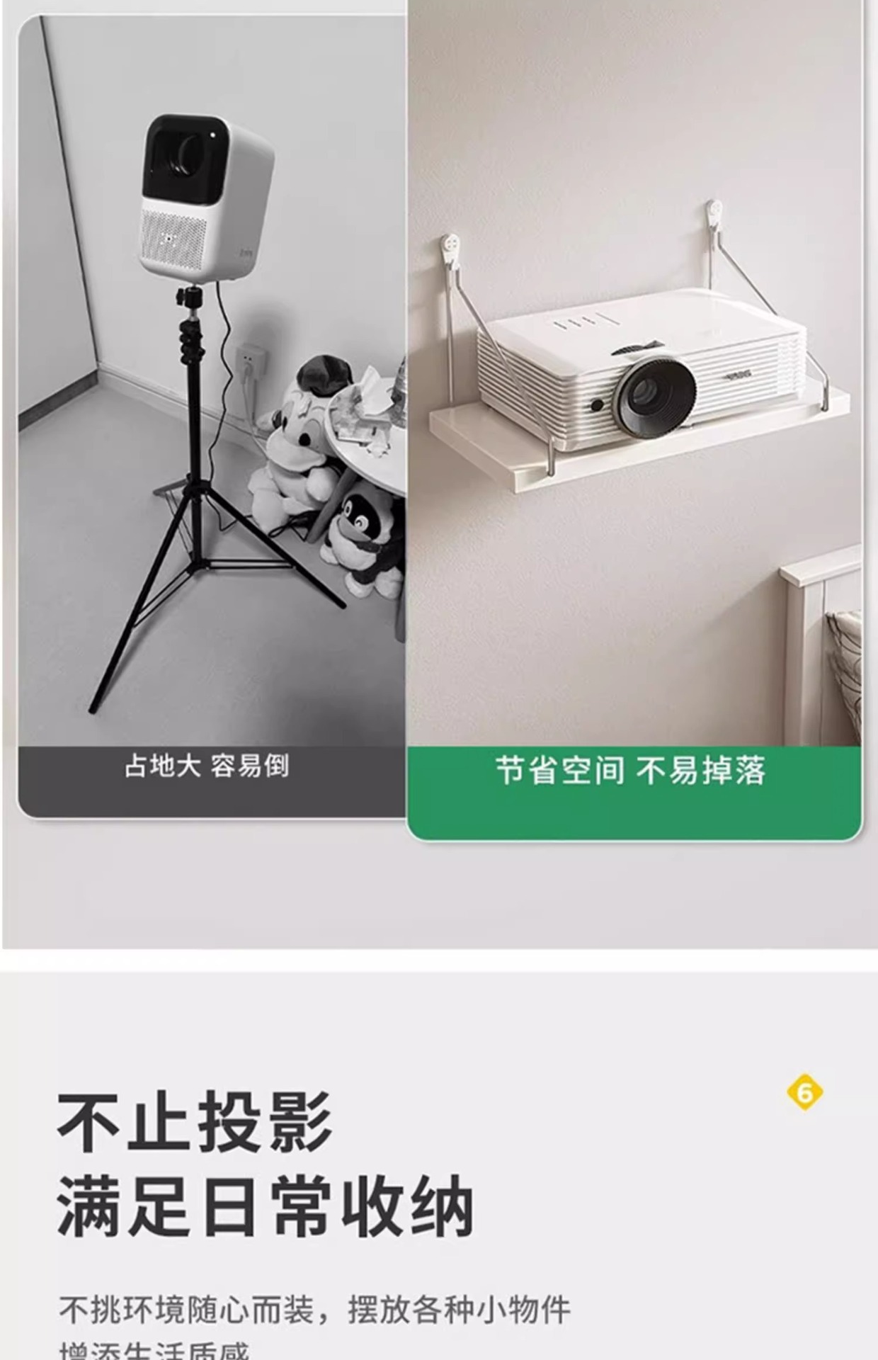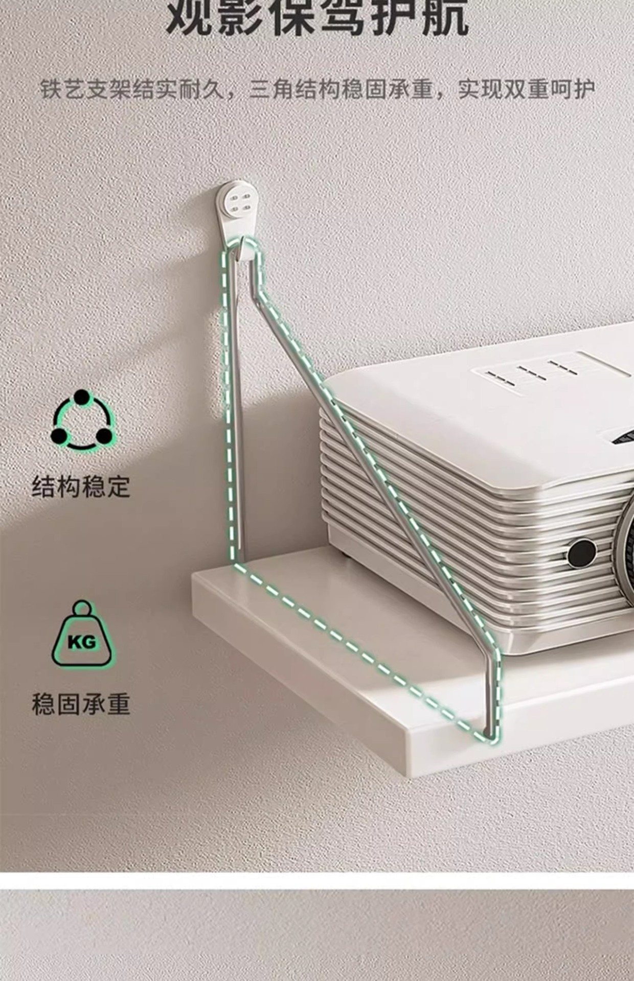 펀칭 없는 프로젝터 브래킷 침대 옆 벽걸이형 벽면 랙 라우터 걸이 랙 트레이 삼각대스토어 가기