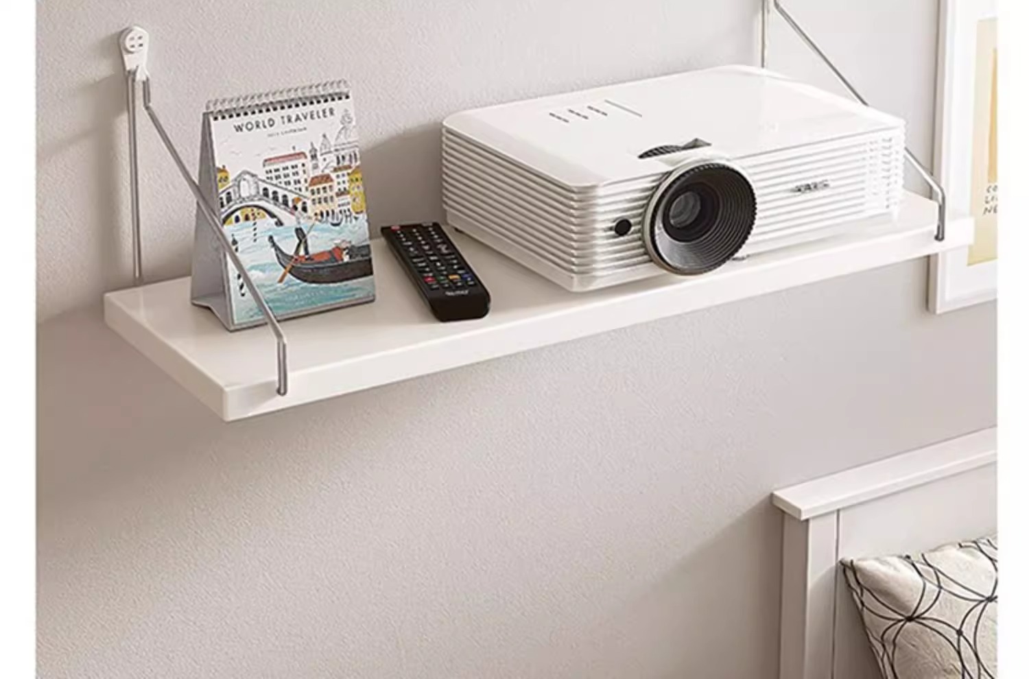 펀칭 없는 프로젝터 브래킷 침대 옆 벽걸이형 벽면 랙 라우터 걸이 랙 트레이 삼각대