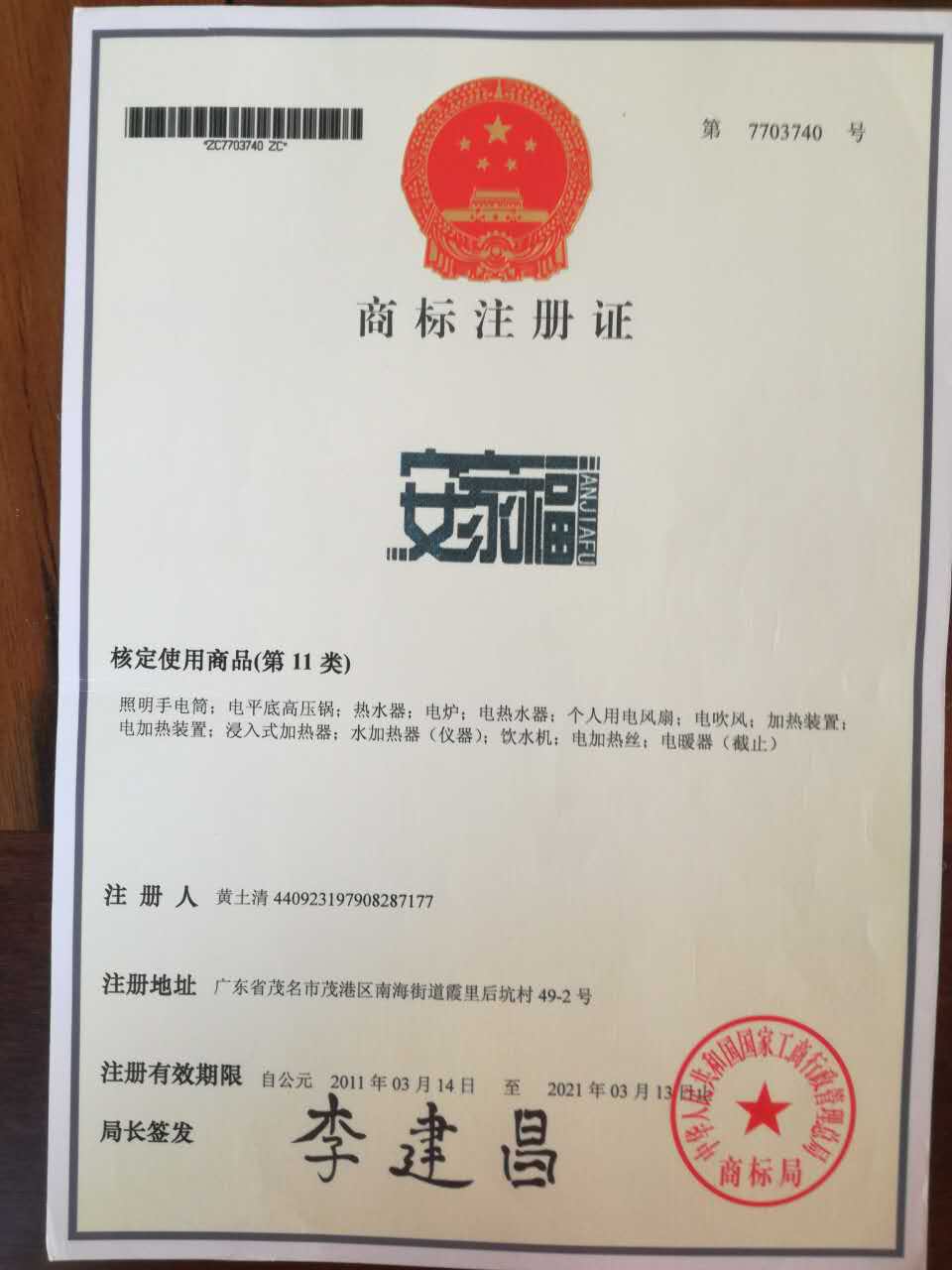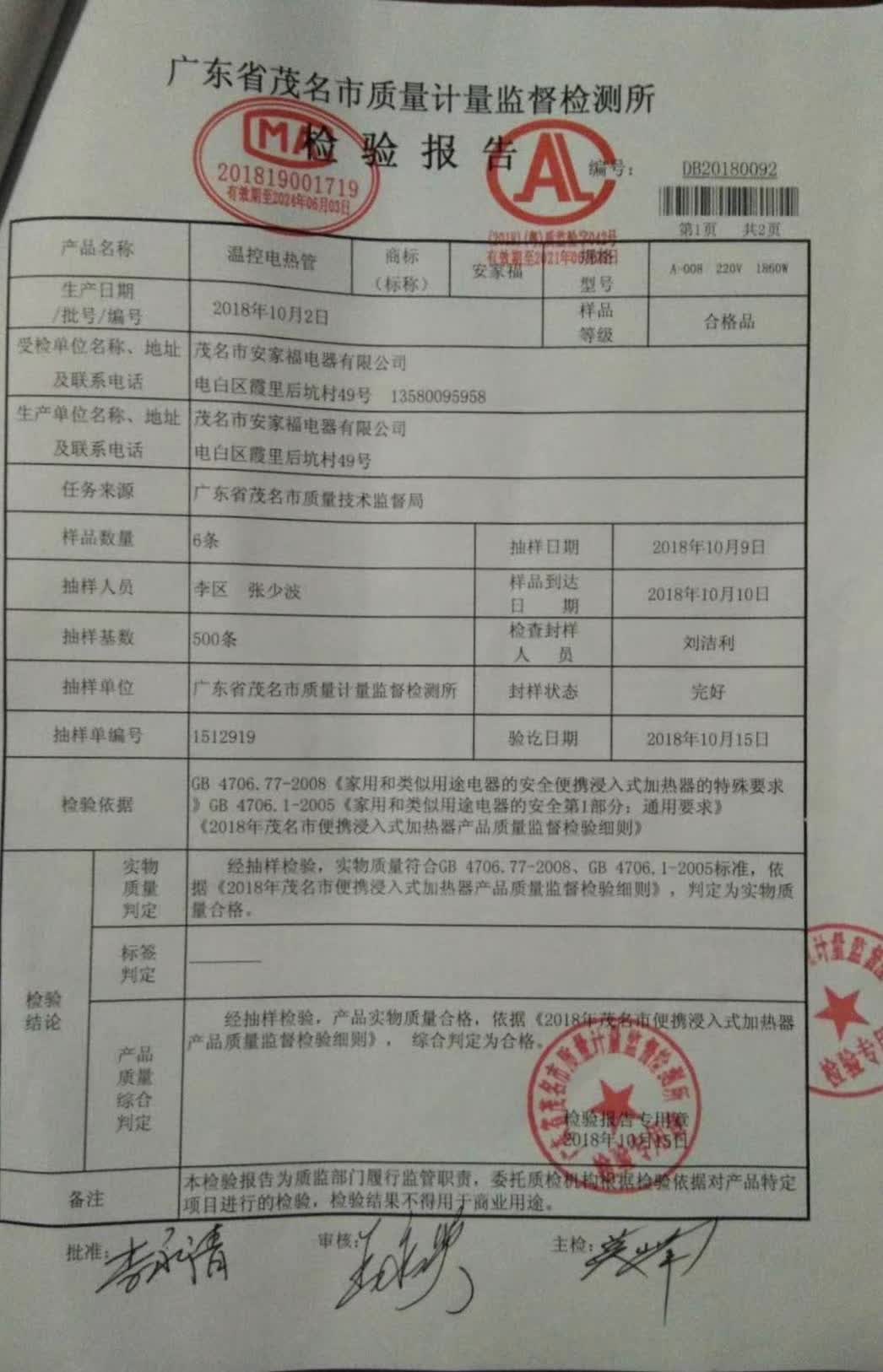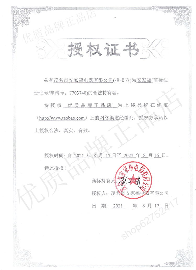 制造商:茂名市安家福电器有限公司