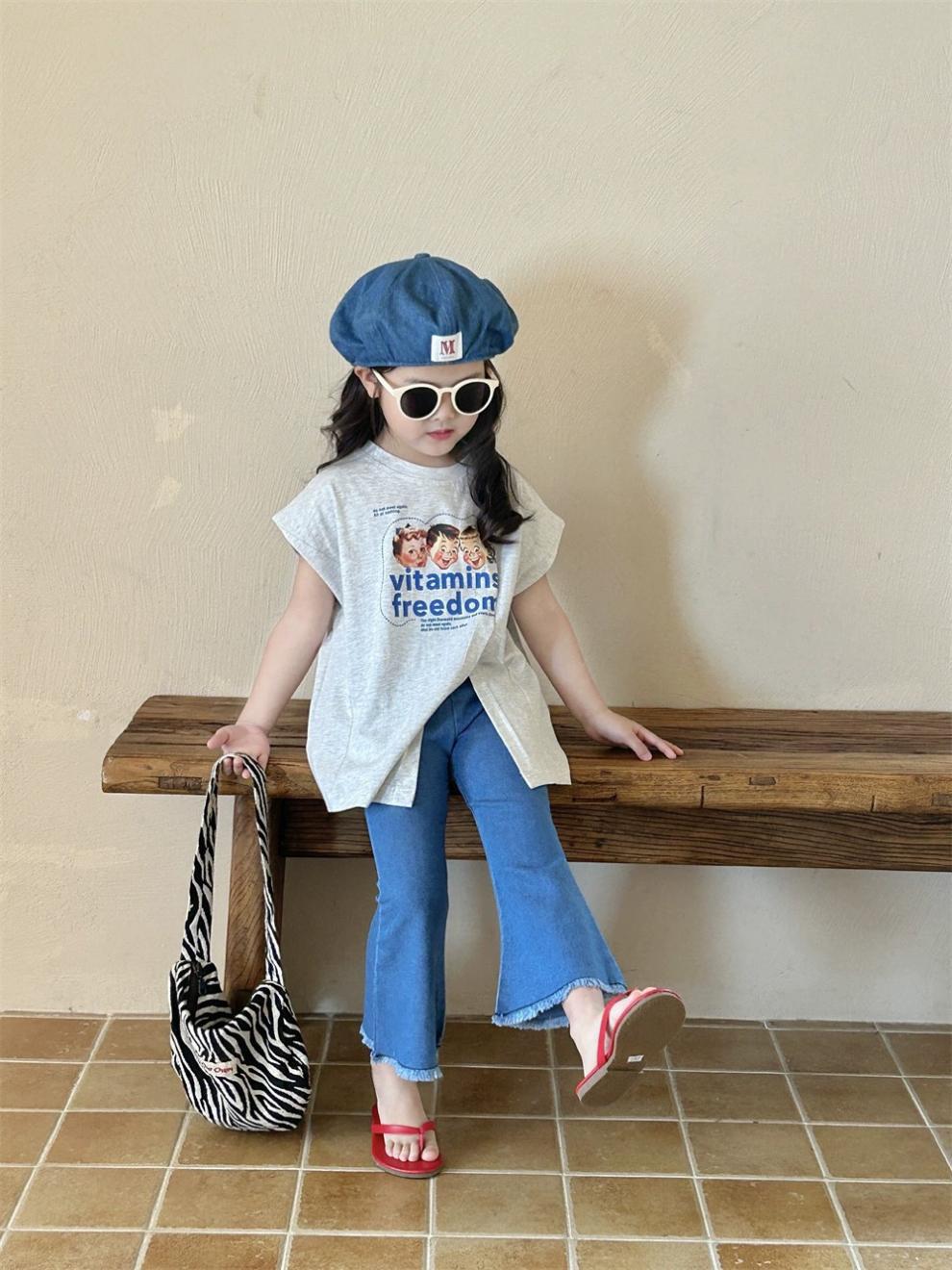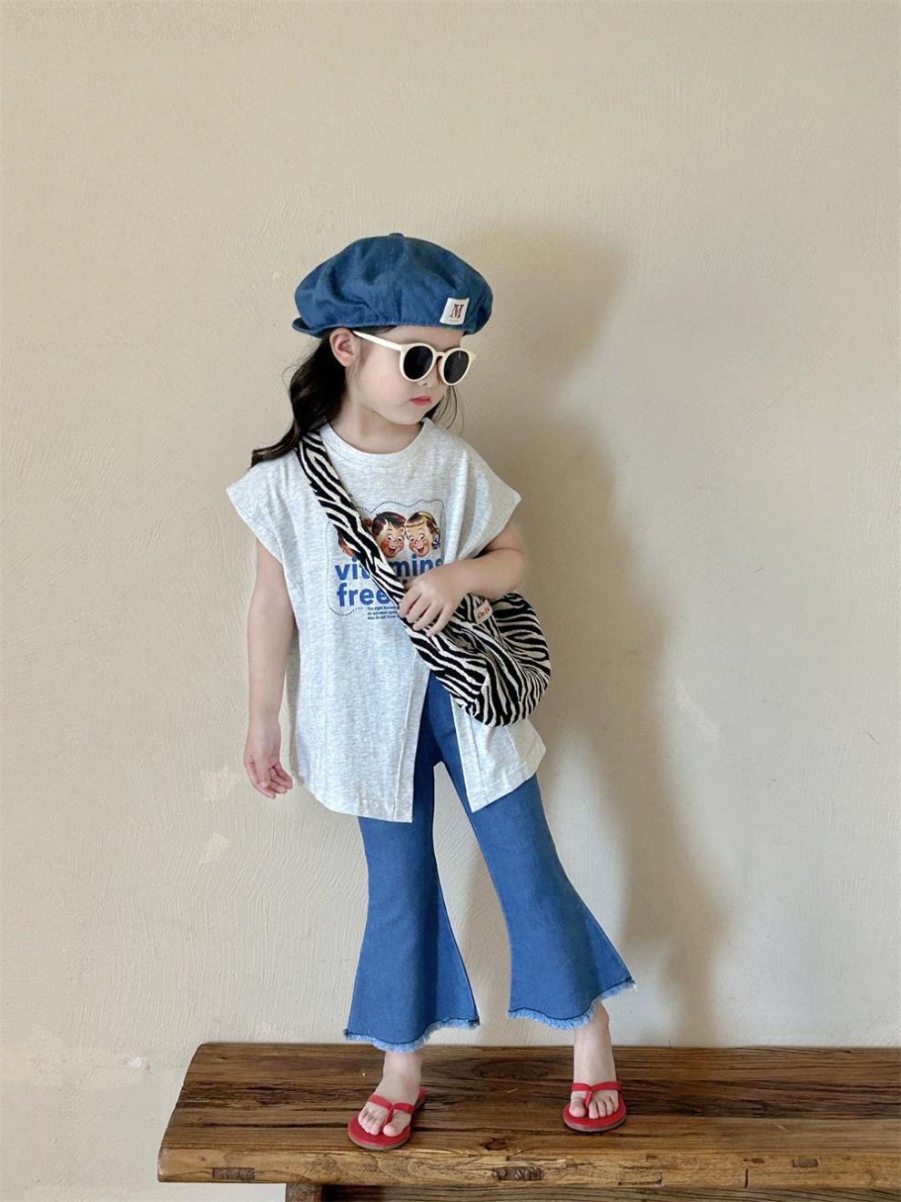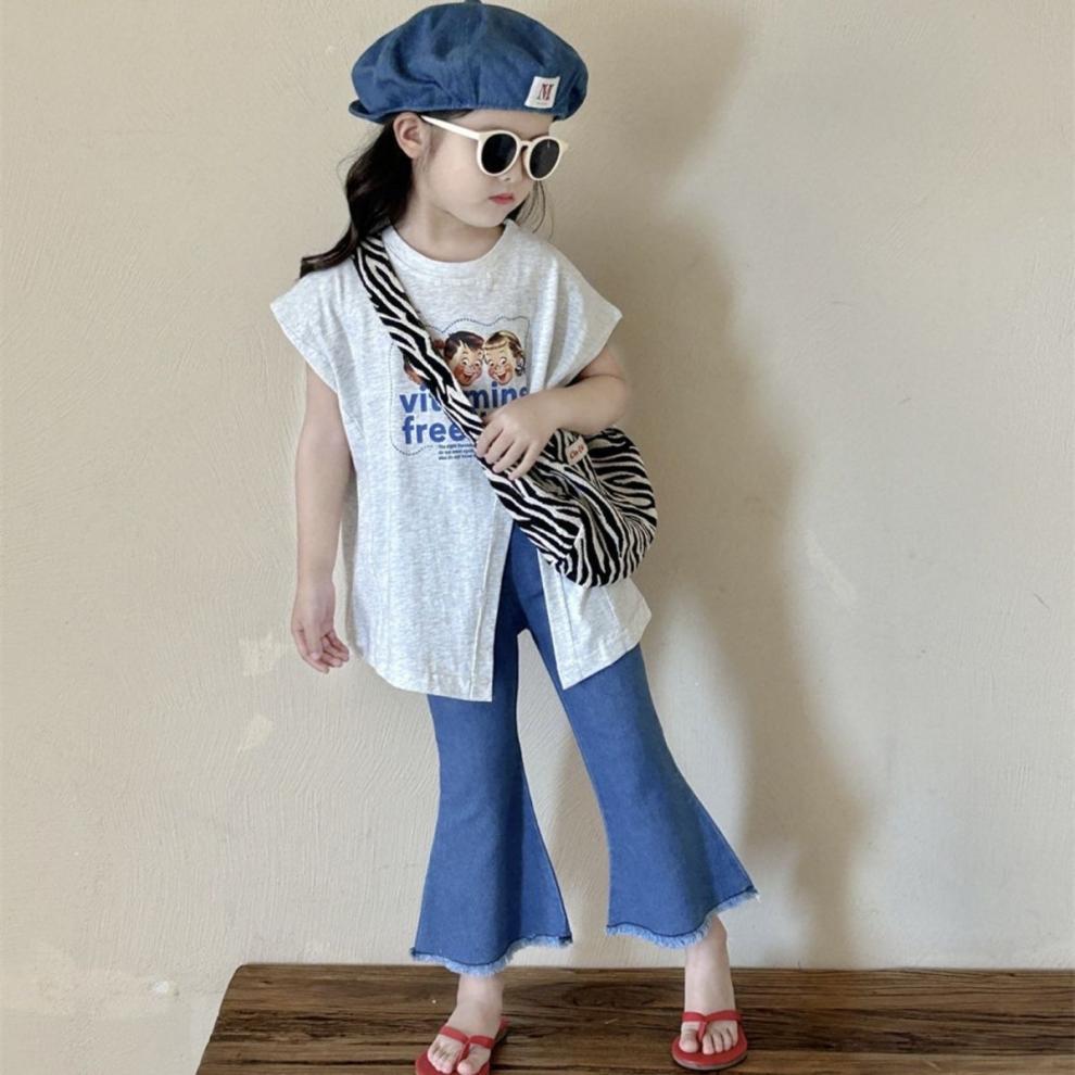 소녀 2025 여름 새로운 도착 세트 어린이 한국 캐주얼 티셔츠 아기 스타일 느슨한 분할 짧은 소매